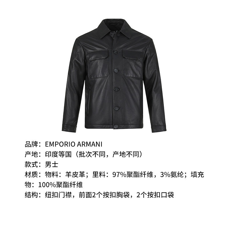 【甄品精选】EA阿玛尼 男士羊夹棉男装夹克皮衣外套 H41R80 E1P80