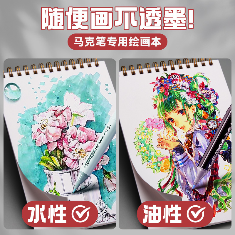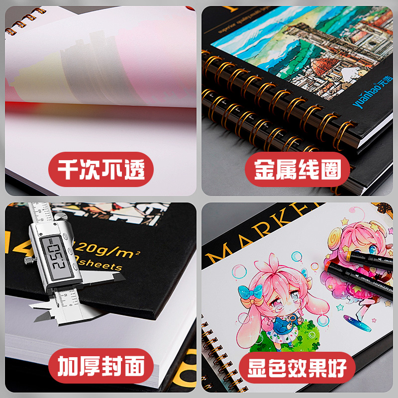 元浩A4马克笔专用绘画本线圈8K动漫马克本16K儿童小学生一年级画画本子空白A3美术生速写成年漫画专业手绘本