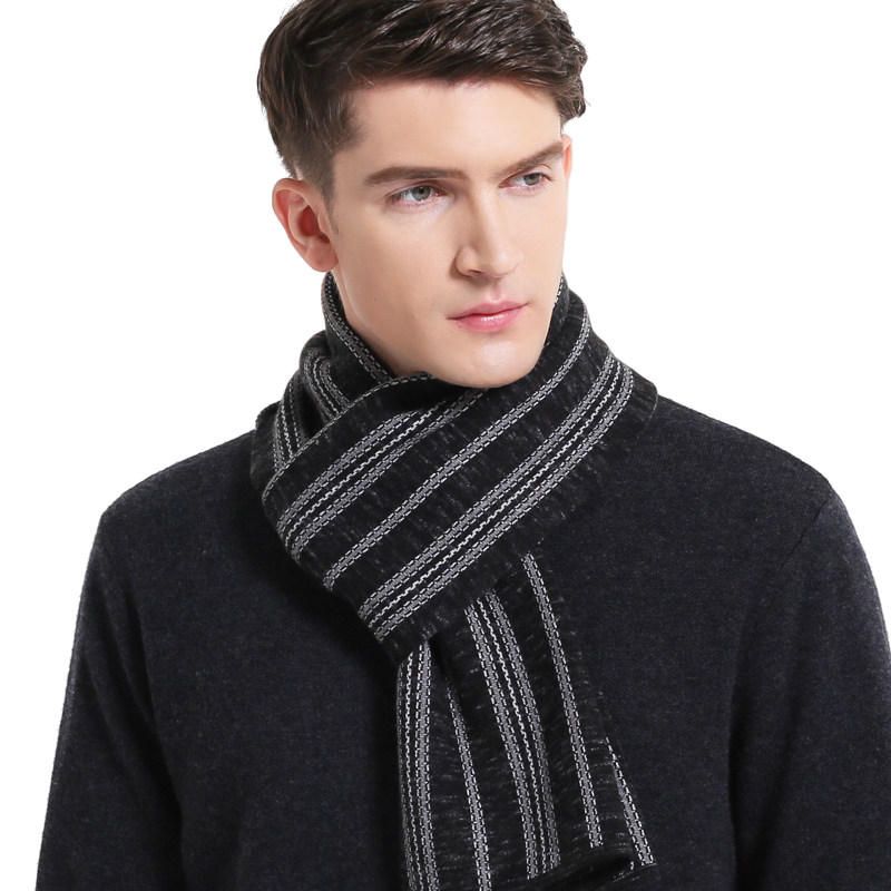 羊毛男士围巾冬季针织加厚中年中老年爸爸围脖过年送礼长辈礼盒装