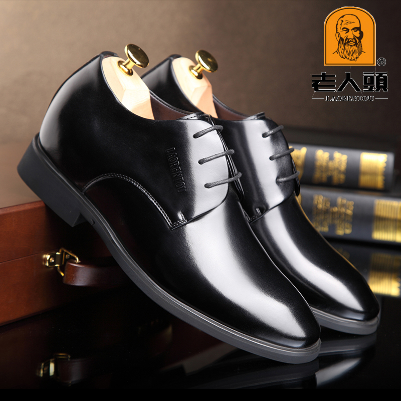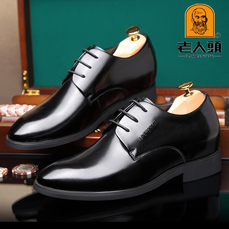 老人头皮鞋男真皮2025新款鞋子商务正装鞋 小码隐形内增高男鞋6cm