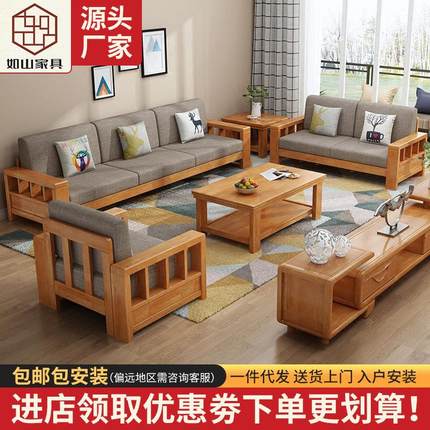 北欧实木沙发组合现代简约贵妃转角小户型客厅家具橡胶木布艺沙发