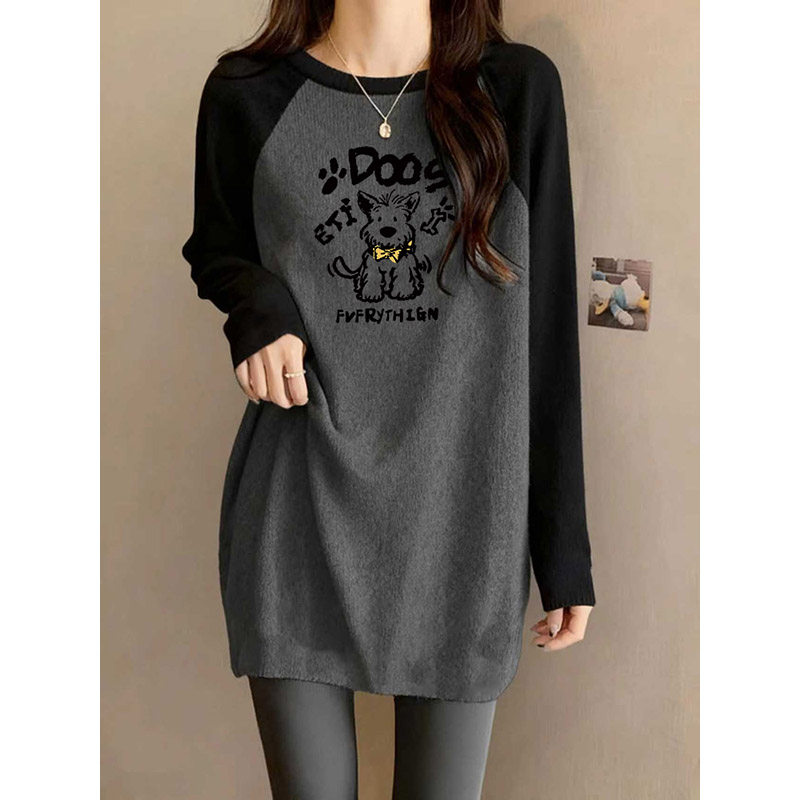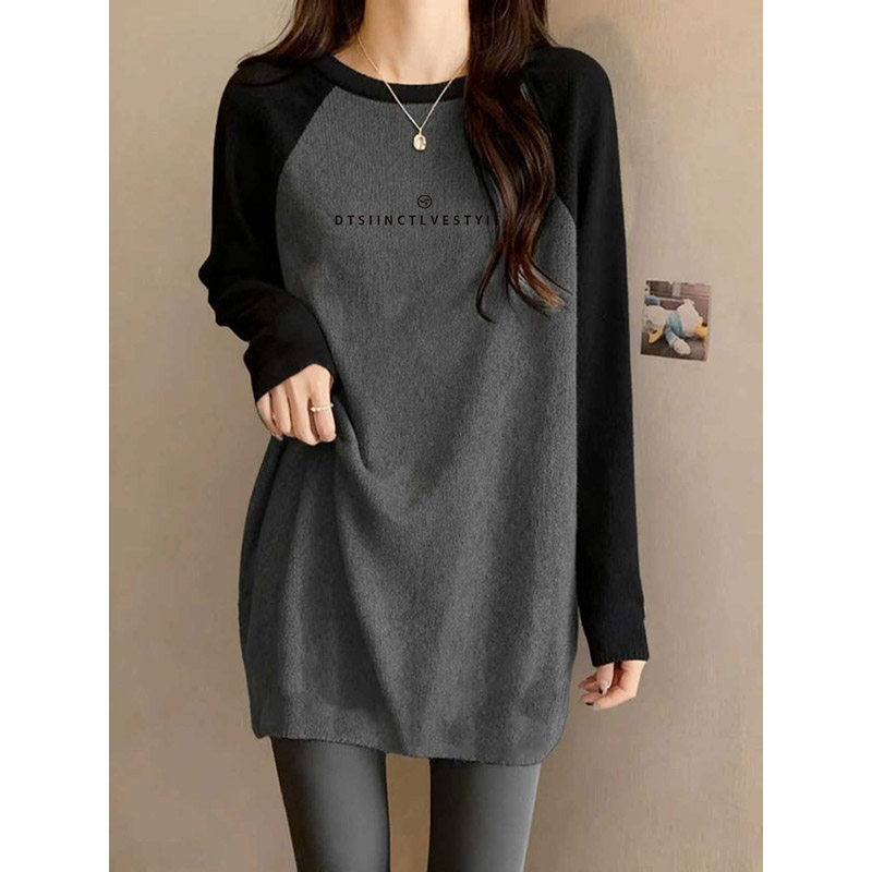 大码女装秋冬保暖磨毛T恤欧货圆领中长款遮屁股上衣长袖打底衫ins