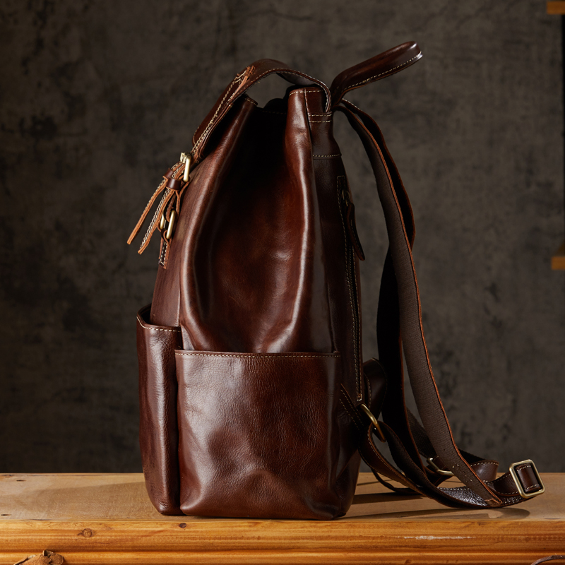 手工植鞣牛皮双肩包旅行男士背包