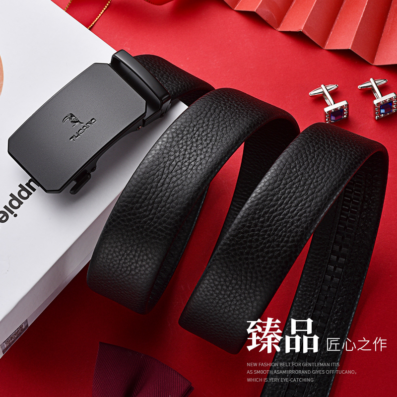 啄木鸟皮带男士正品牛皮自动扣真皮裤带中年青年商务休闲男裤腰带
