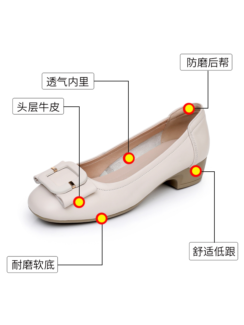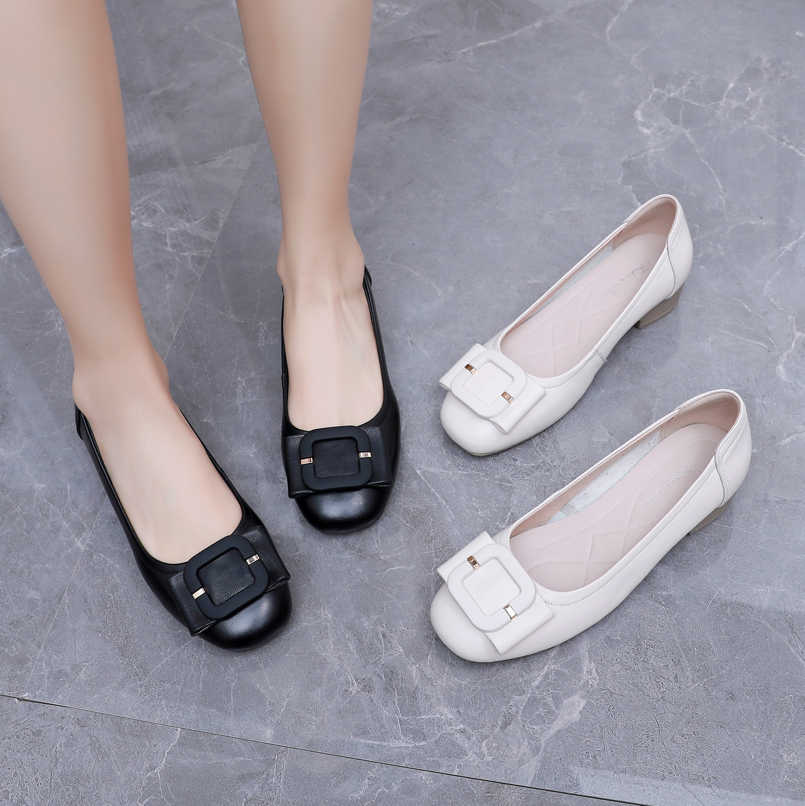 真皮单鞋女软底2024春夏季新款低跟粗跟浅口中年妈妈鞋上班工作鞋