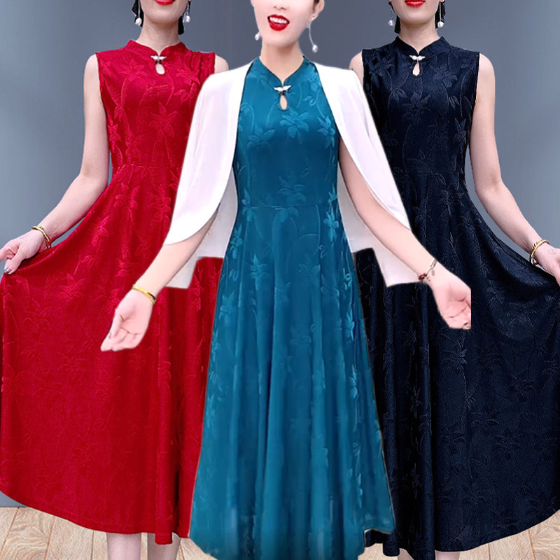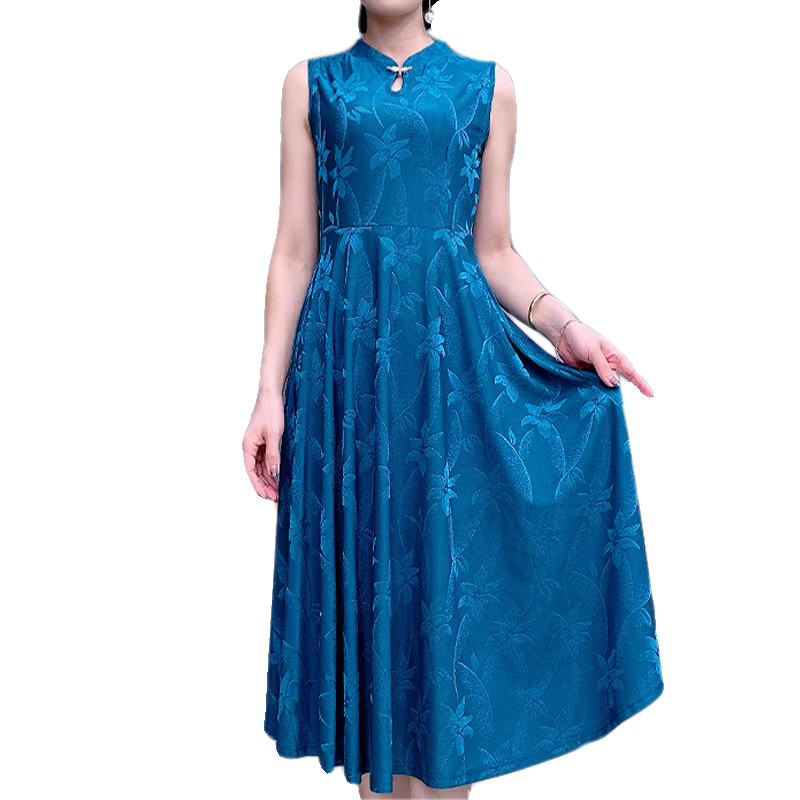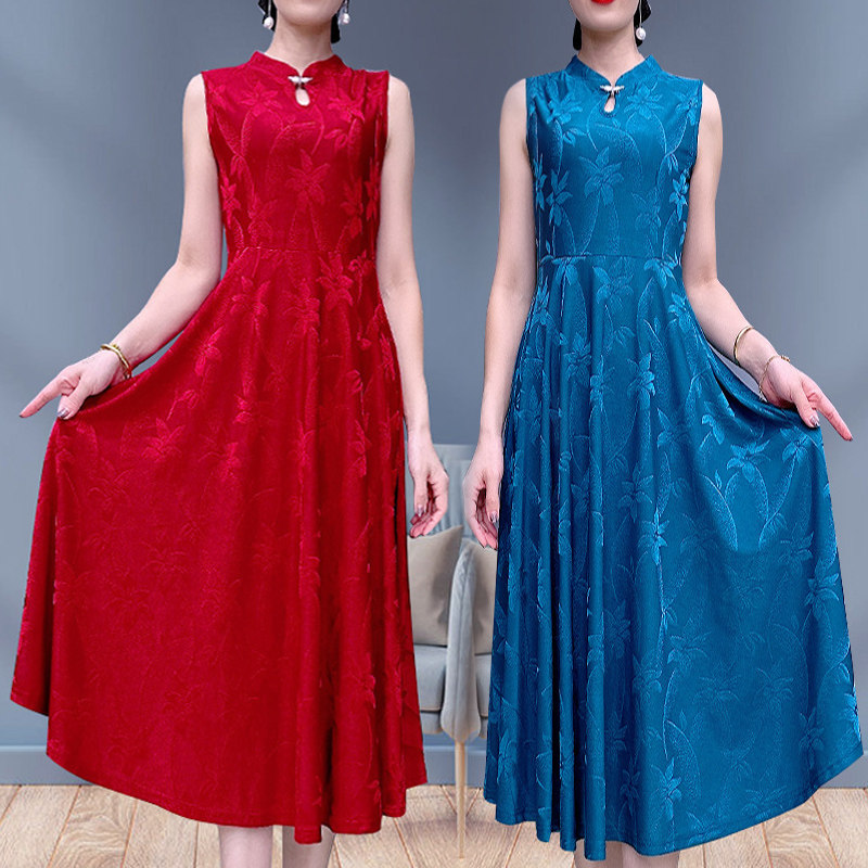 大码改良旗袍连衣裙女夏季中长款冰丝无袖背心遮肉洋气内搭长裙子