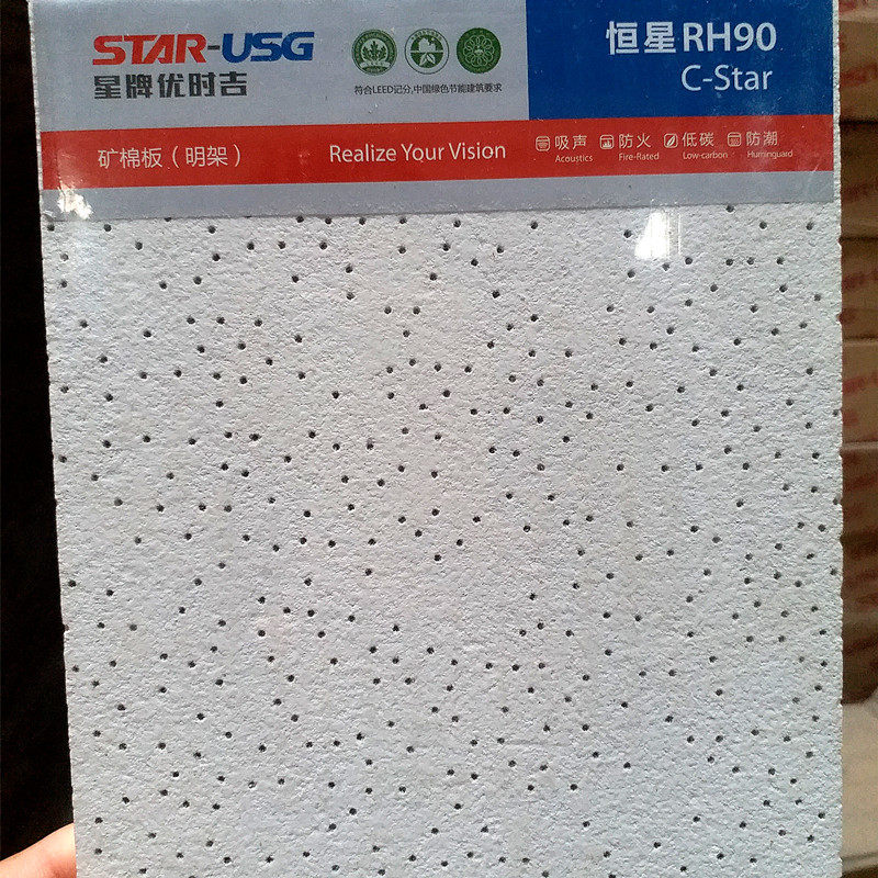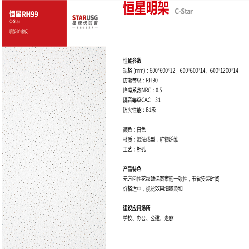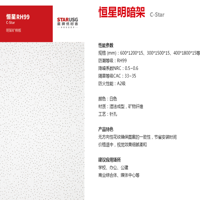 恒星矿棉板星牌优时吉600明暗架针孔花纹吊顶吸音明架天花板594mm