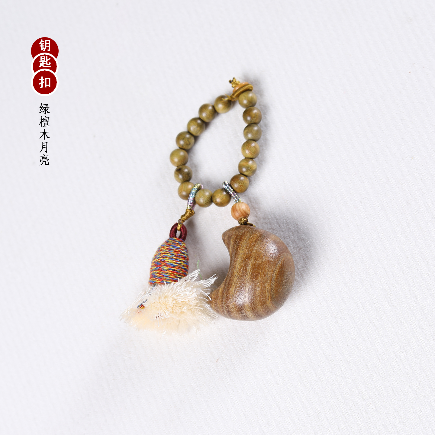 天然绿檀实木星星月亮挂件编绳饰品文玩流苏包包挂钥匙扣可爱挂饰