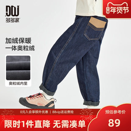 多多家男童加绒牛仔裤秋冬款2025年新款儿童中大童长裤冬装裤子潮