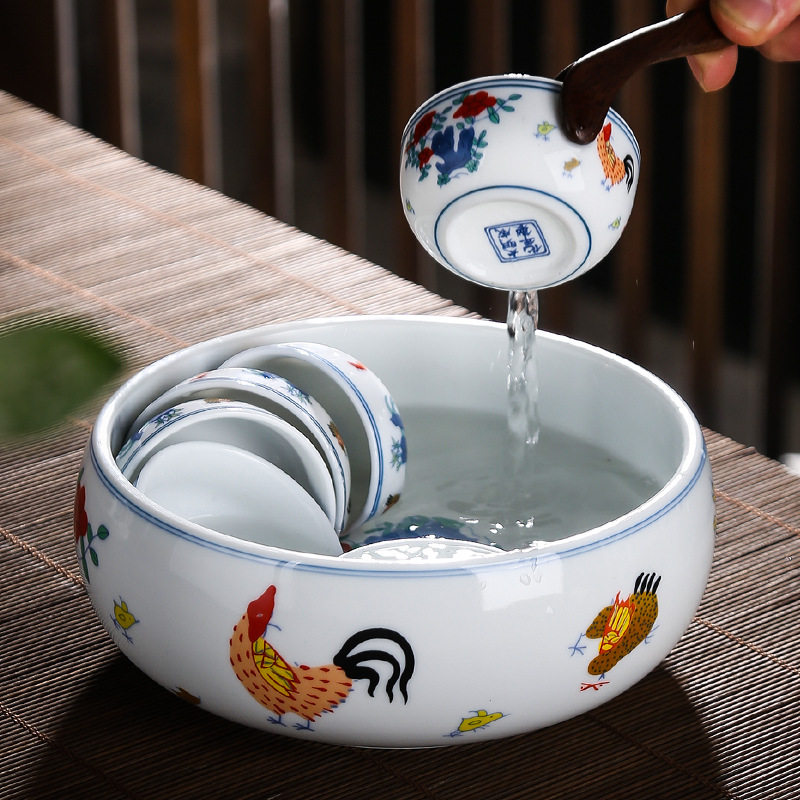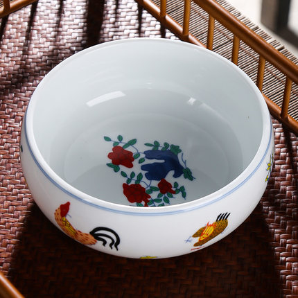 成化斗彩鸡缸杯茶洗陶瓷茶具配件大号家用笔洗洗茶碗茶道零配水缸