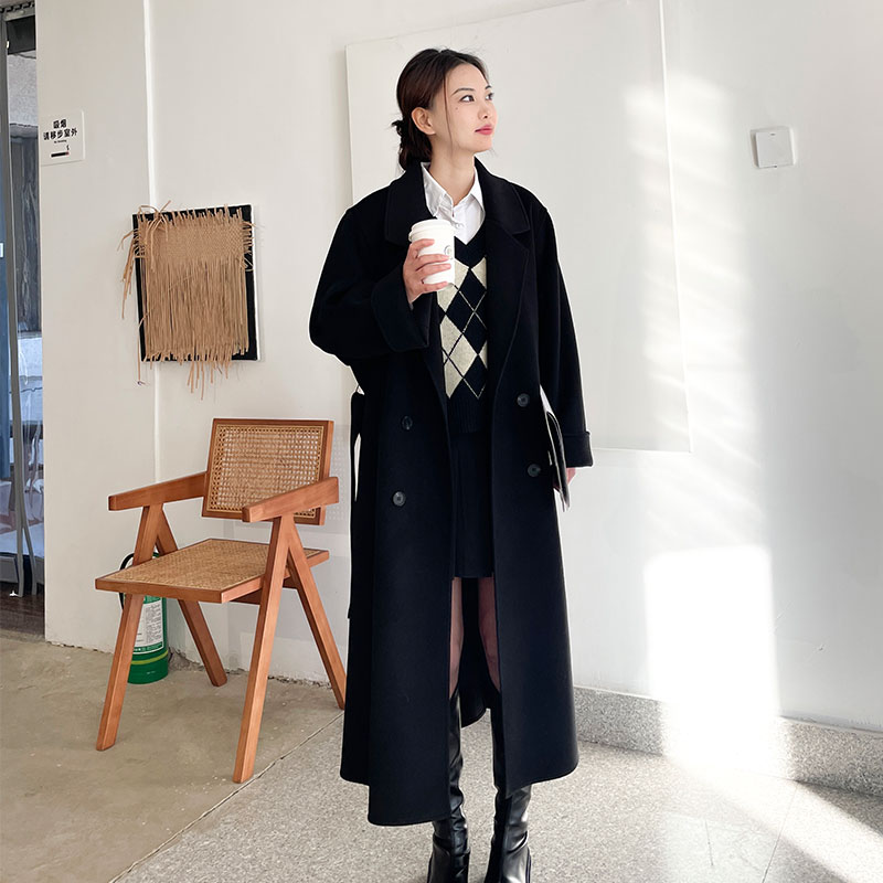 高个子长款羊毛双面羊绒大衣柬笙