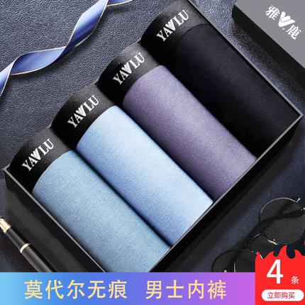 雅鹿男士莫代尔内裤男生抗菌裆透气男式大码男款四角短裤头平角裤