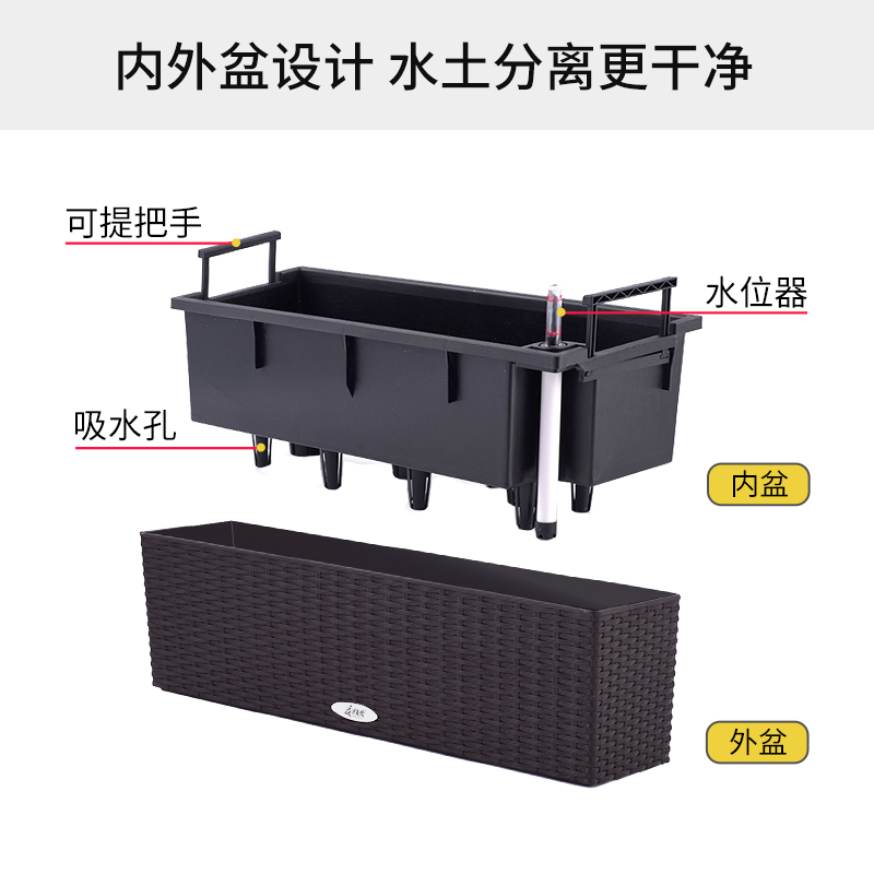 阳台花盆种菜神器长方形花箱懒人自吸水种植箱护栏架悬挂花盆塑料