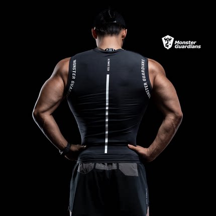 Monster Guardians紧身衣男夏无袖健身压缩上衣篮球运动训练背心