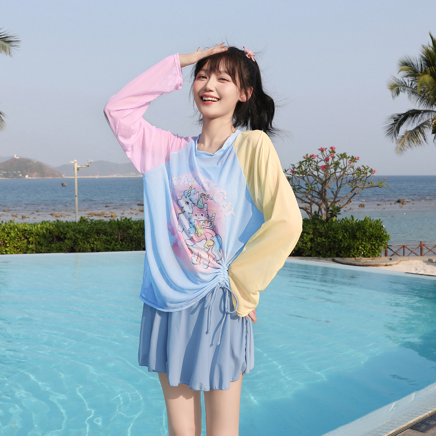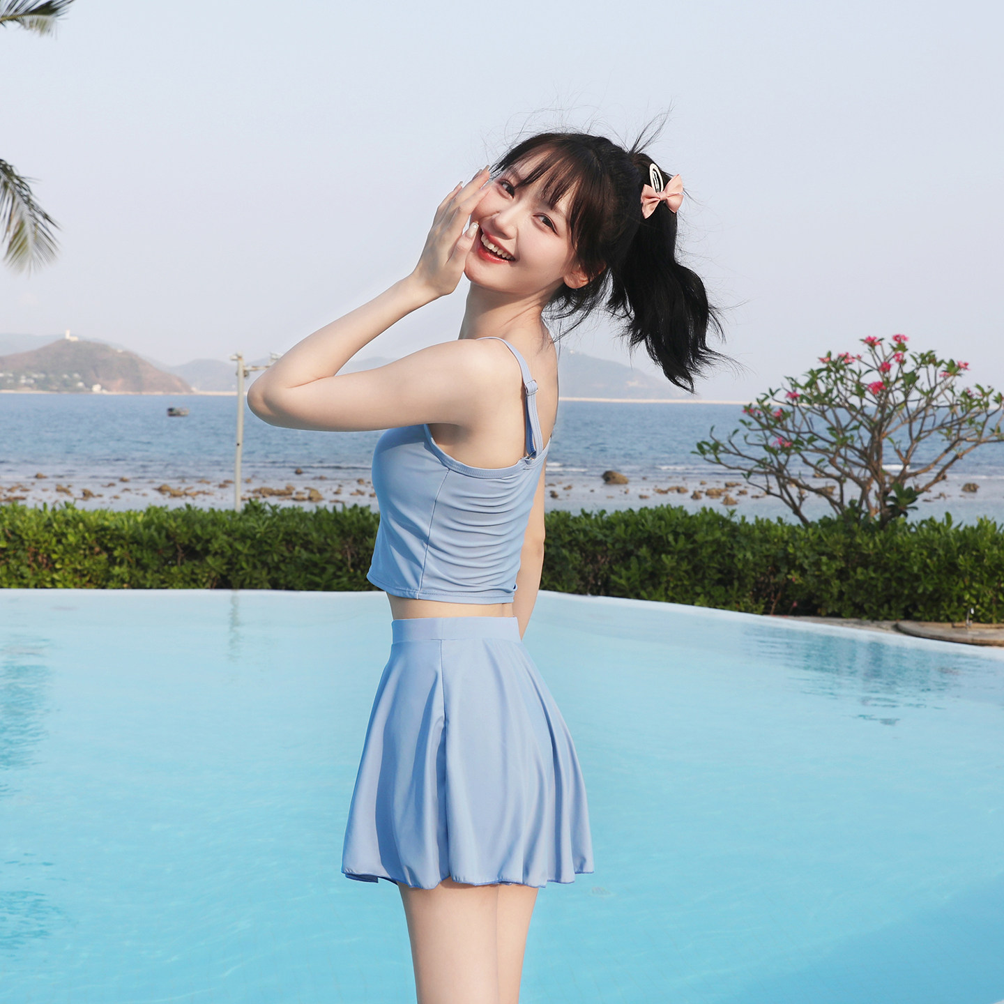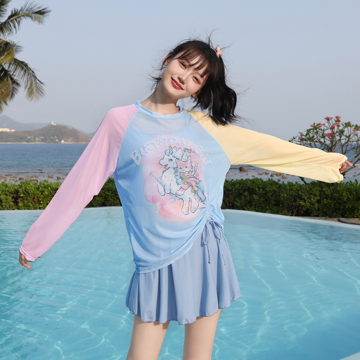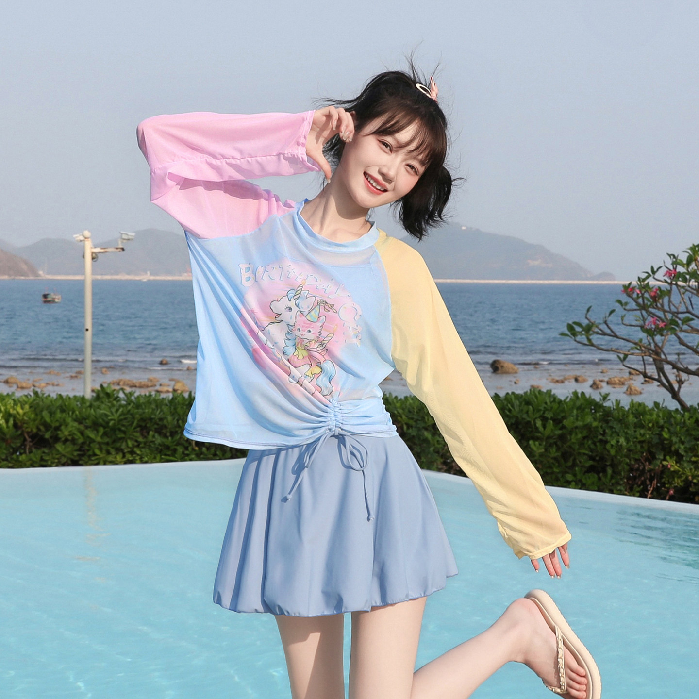 2025新款爆款游泳衣女分体三件套保守显瘦遮肚学生泡温泉可爱少女