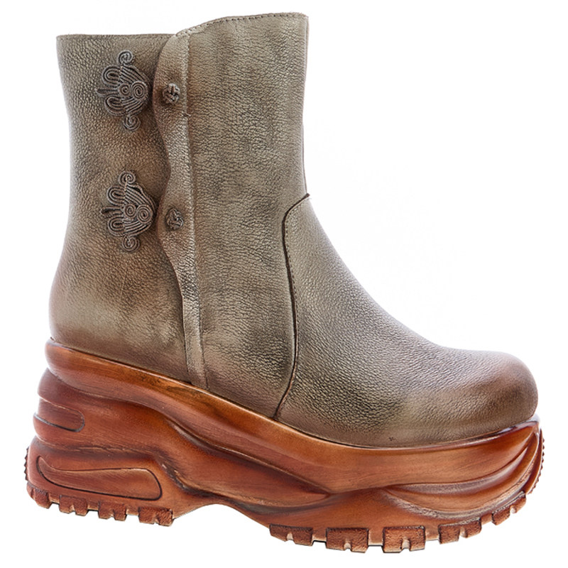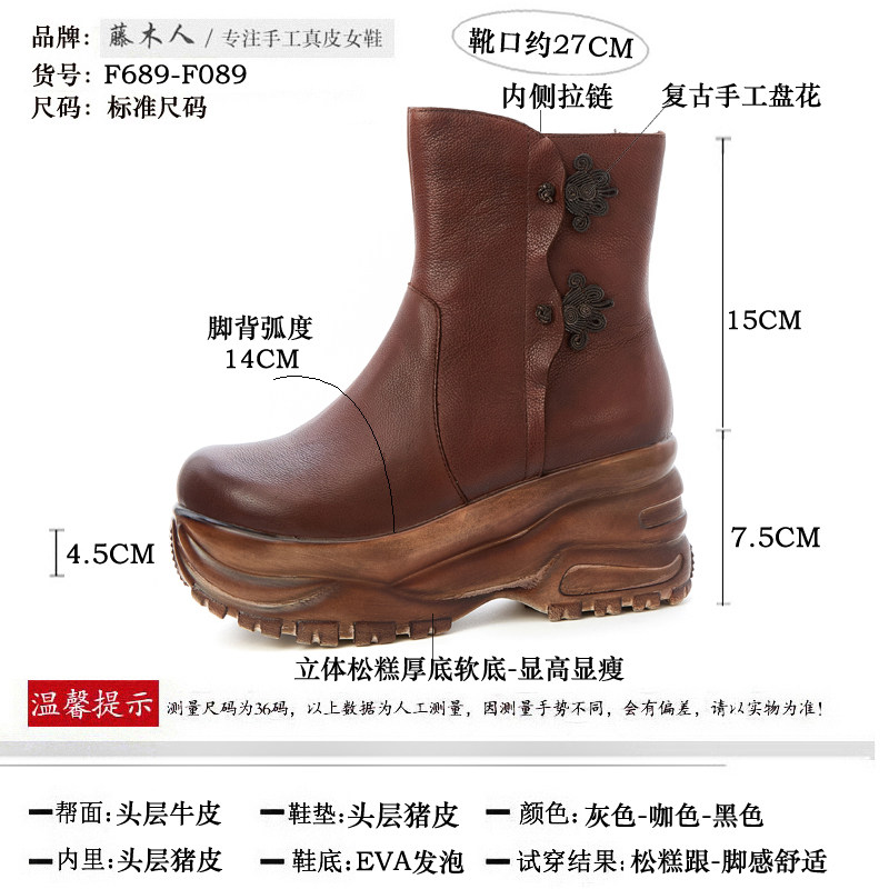新国风森系高跟短靴新爆款春秋单靴冬季加绒短筒女鞋真皮马丁靴子