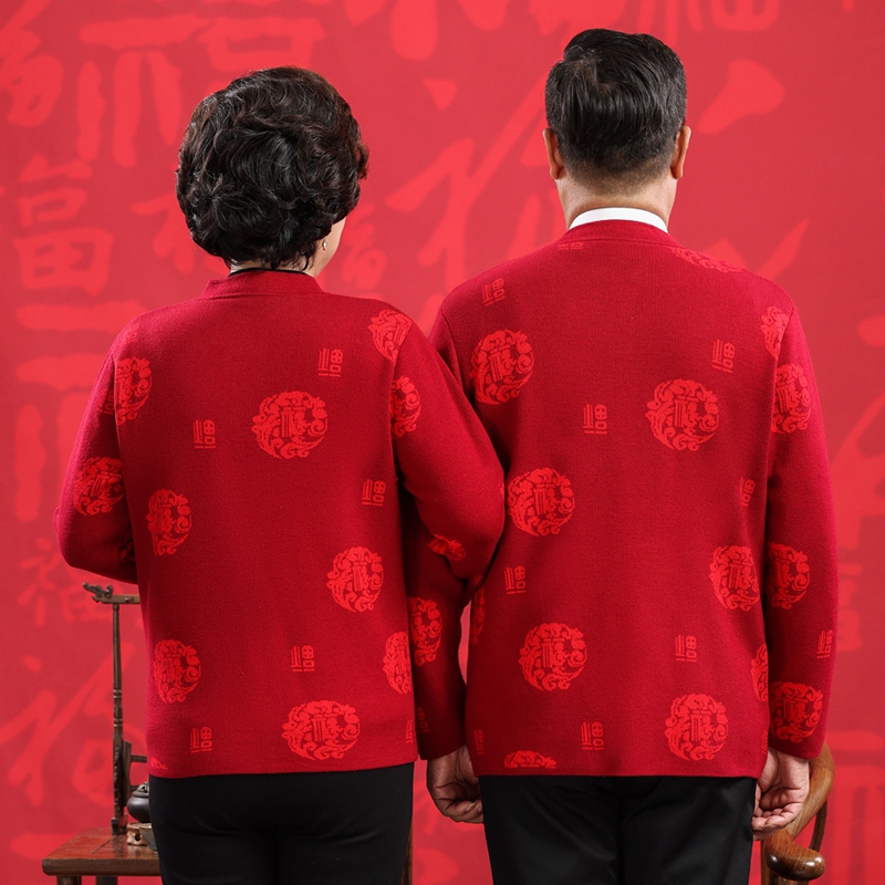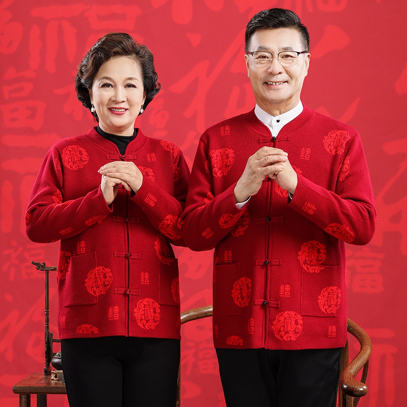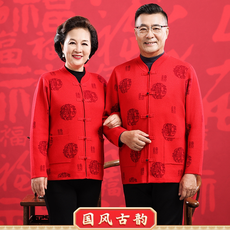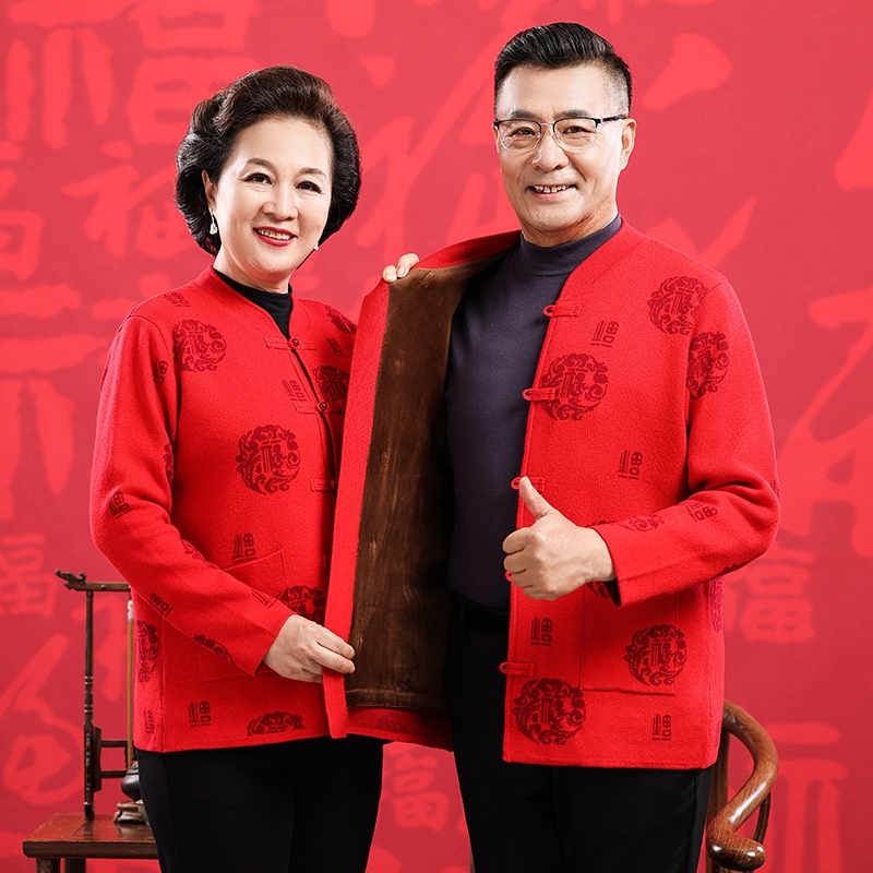 中老年情侣唐装中国风羊毛针织外套老人生日过寿爷爷奶奶冬季棉衣