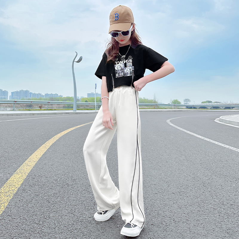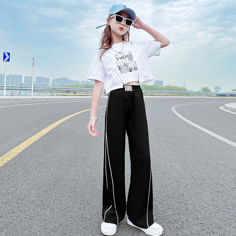 女童装夏装套装2025新款中大童洋气网红女孩运动休闲阔腿裤两件套