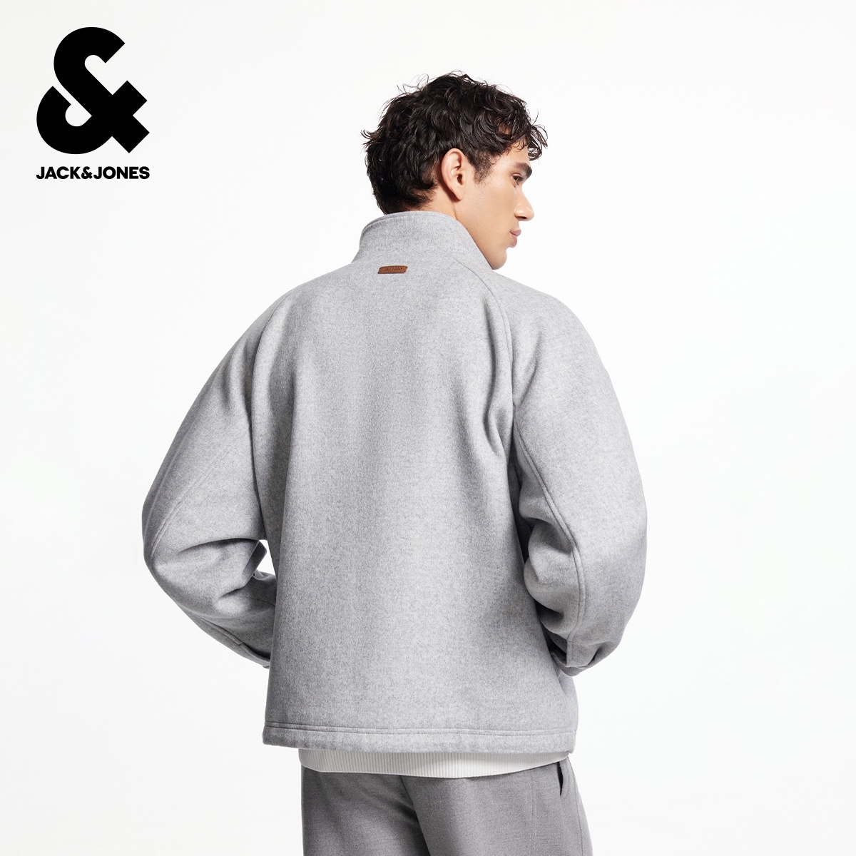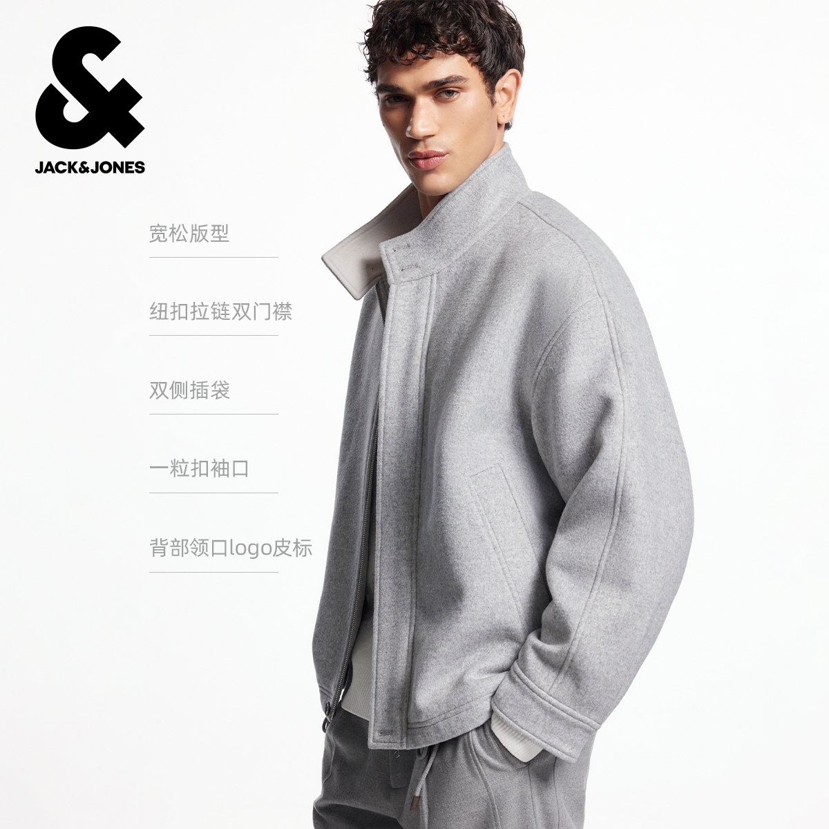 杰克琼斯男装秋冬季毛呢大衣短款保暖外套宽松休闲百搭舒适上衣款