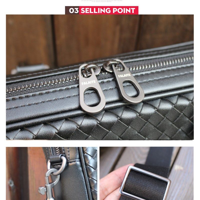 编织羊皮男士手提包横款真皮商务男包大容量15寸电脑公文包包潮
