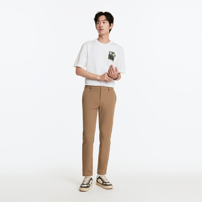 九牧王男装秋季时尚简约轻柔舒适挺阔有型亲肤圆领T恤