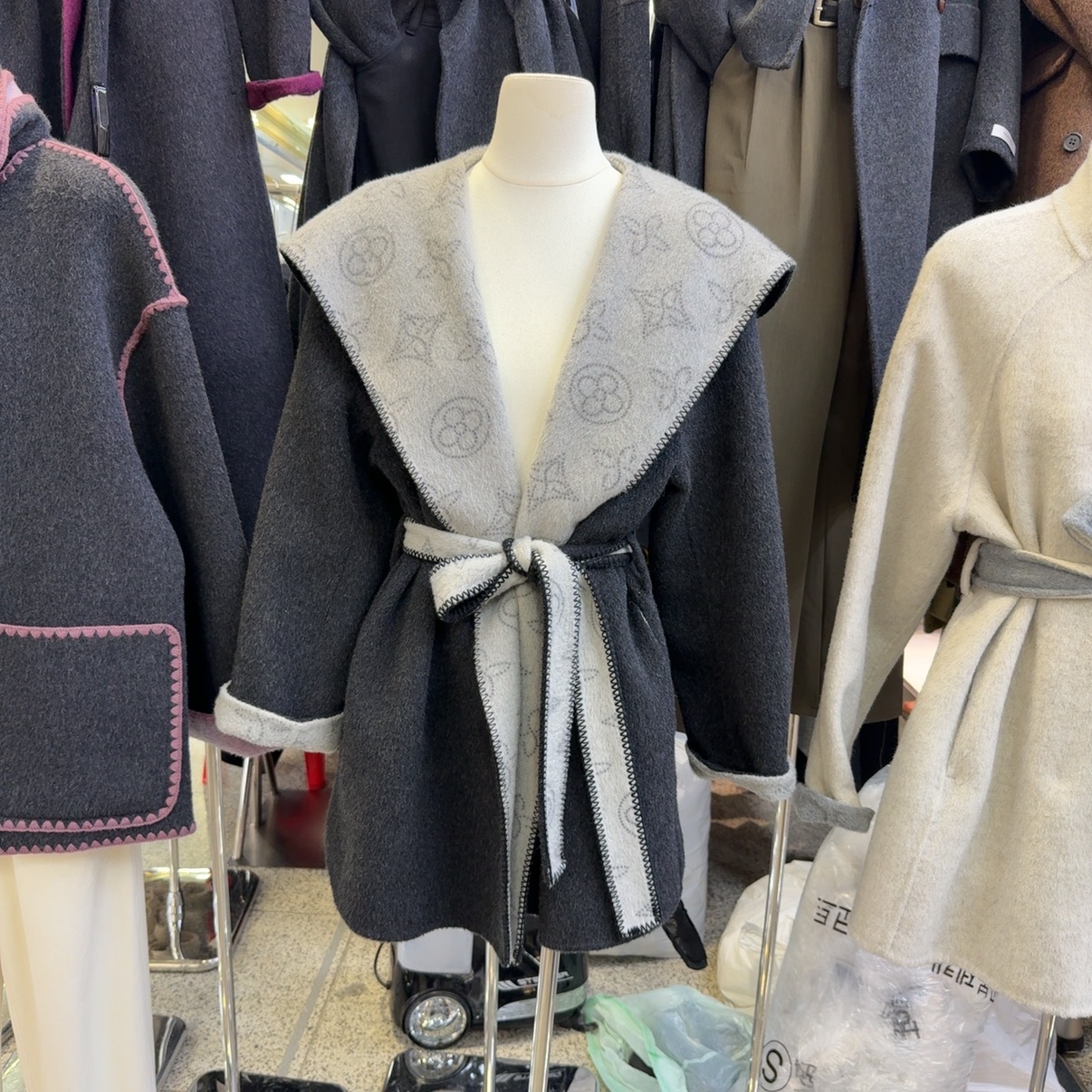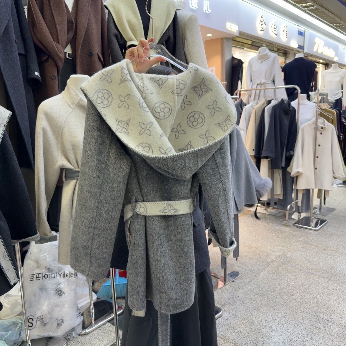 十三行现货2025秋冬新款韩版时尚系带连帽双面羊毛外套S68298W509