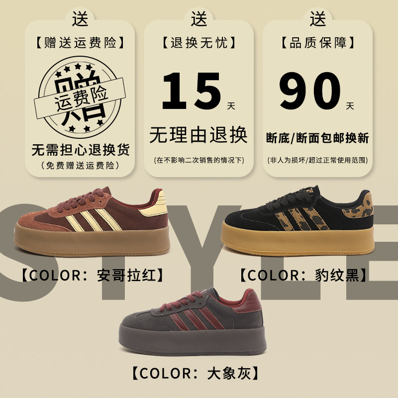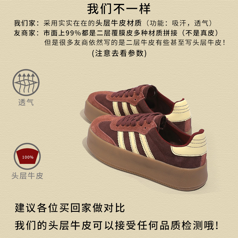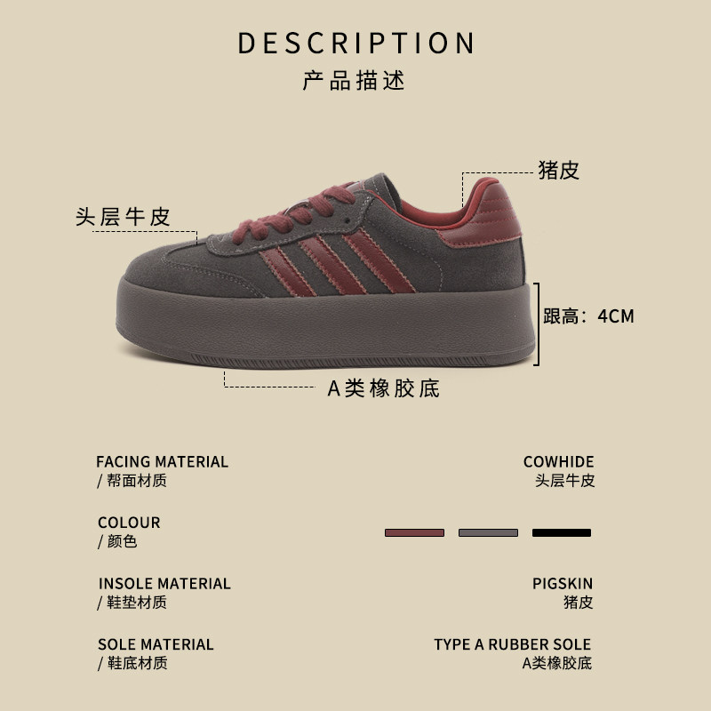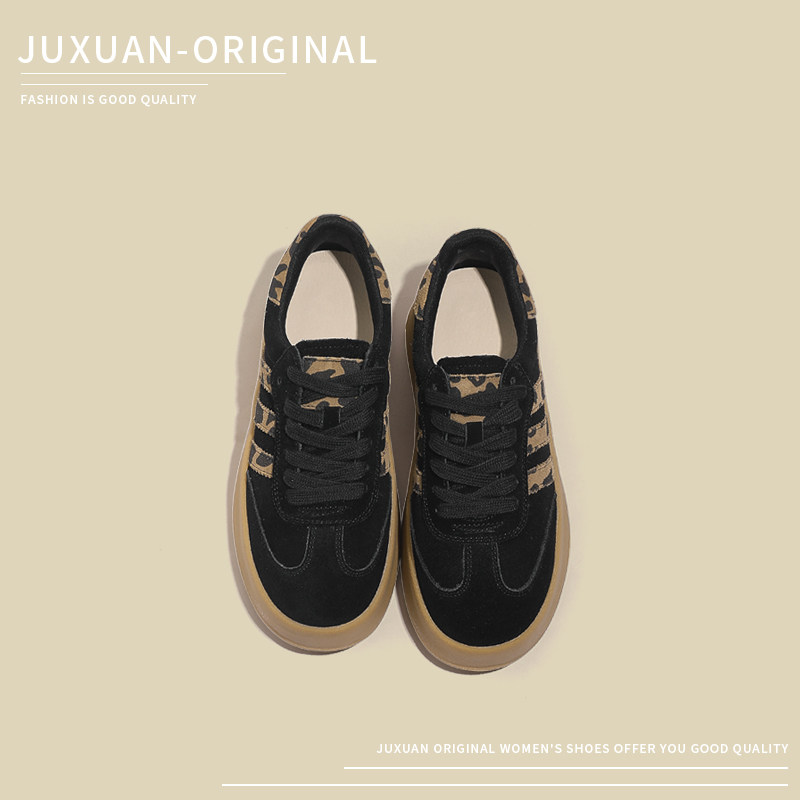 JUXUAN头层牛反绒德训鞋女2025秋冬新款厚底舒适百搭运动休闲板鞋