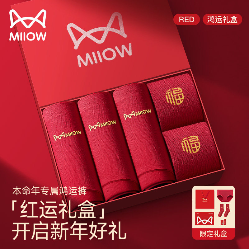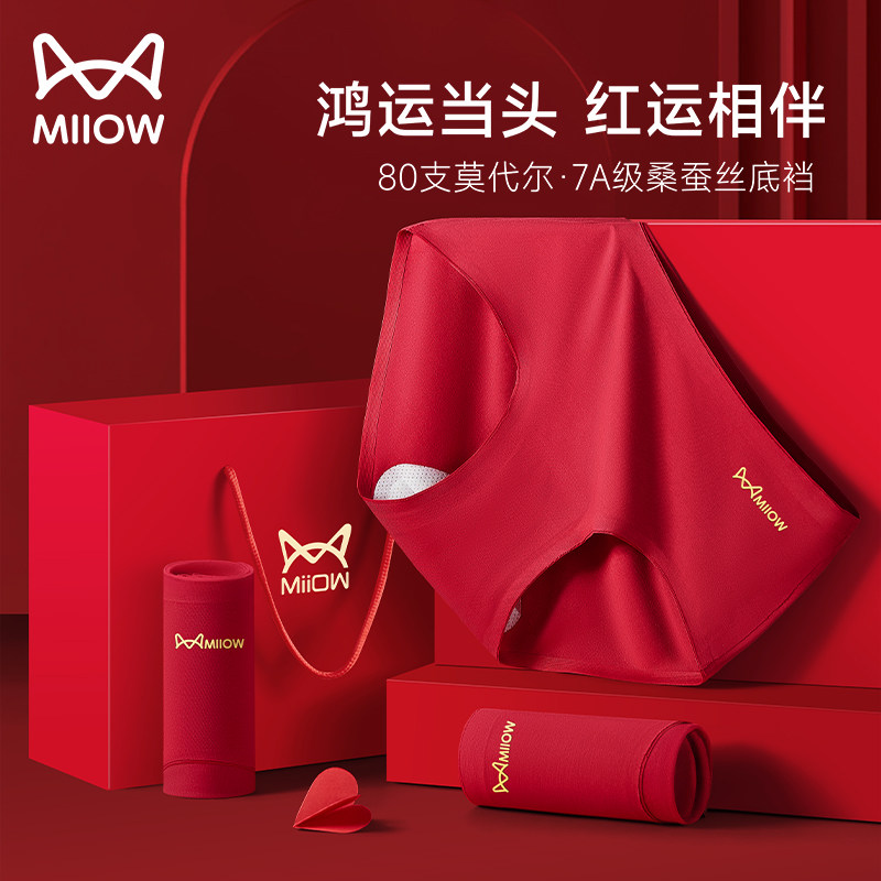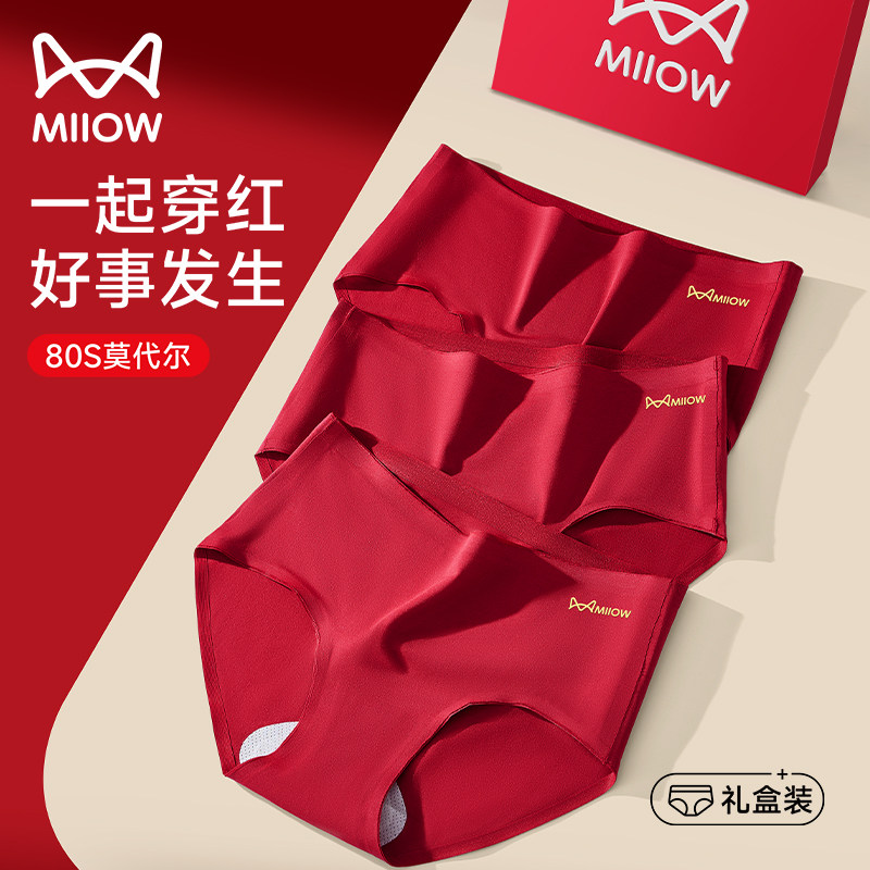猫人本命年女内裤莫代尔蚕丝裆抗菌中腰大码无痕结婚2025红色袜子