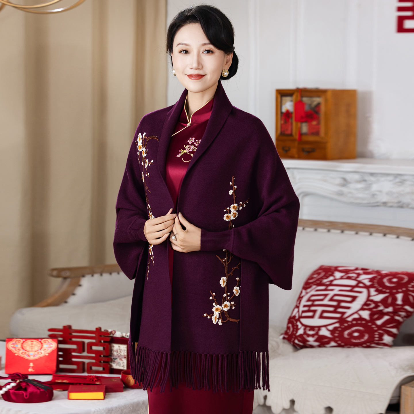 婚礼喜婆婆妈妈配旗袍披肩2025新款秋冬婚宴礼服外搭斗篷外套披风