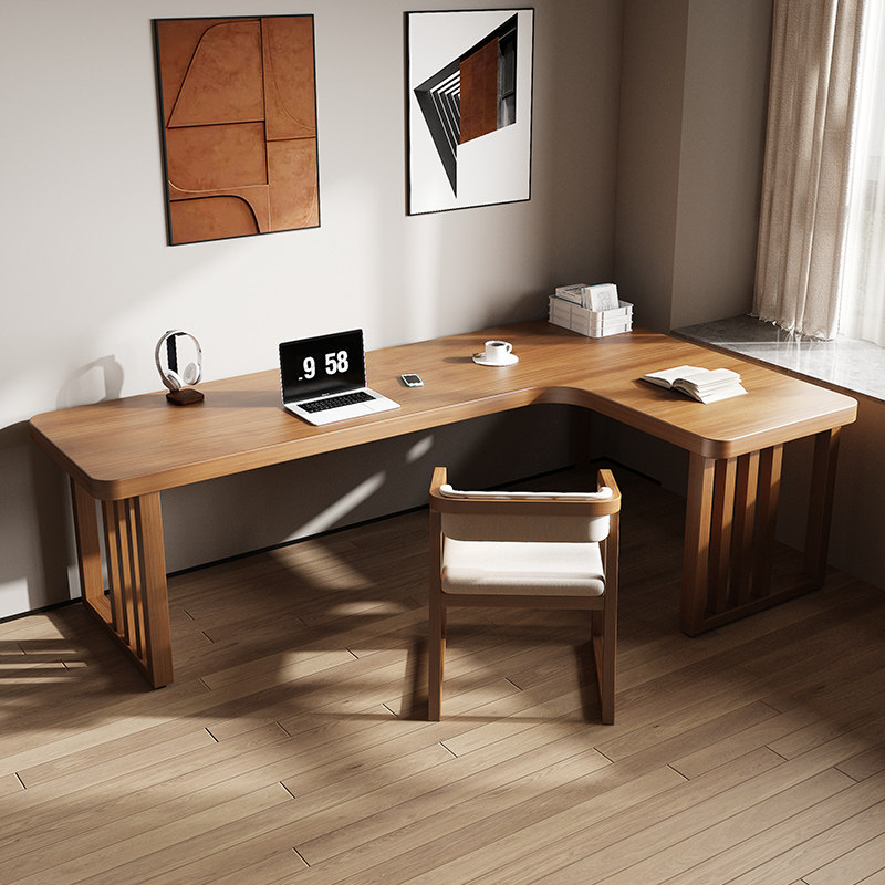 实木转角书桌台式电脑桌简约学生家用卧室 L型定制靠墙写字工作台