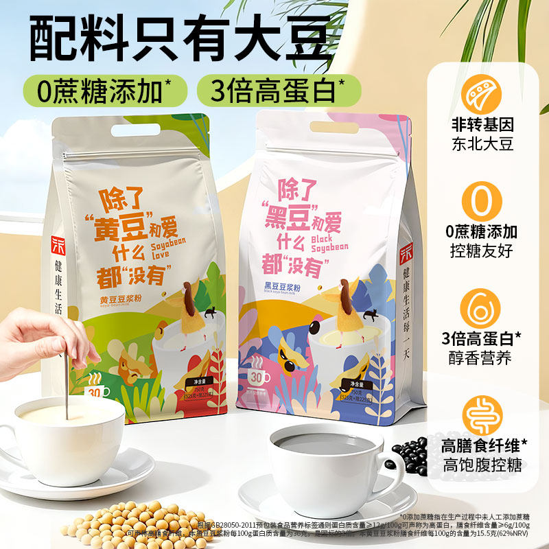 豆浆粉儿童营养早餐独立小包装无糖精东北大豆原味黄豆黑豆豆奶粉