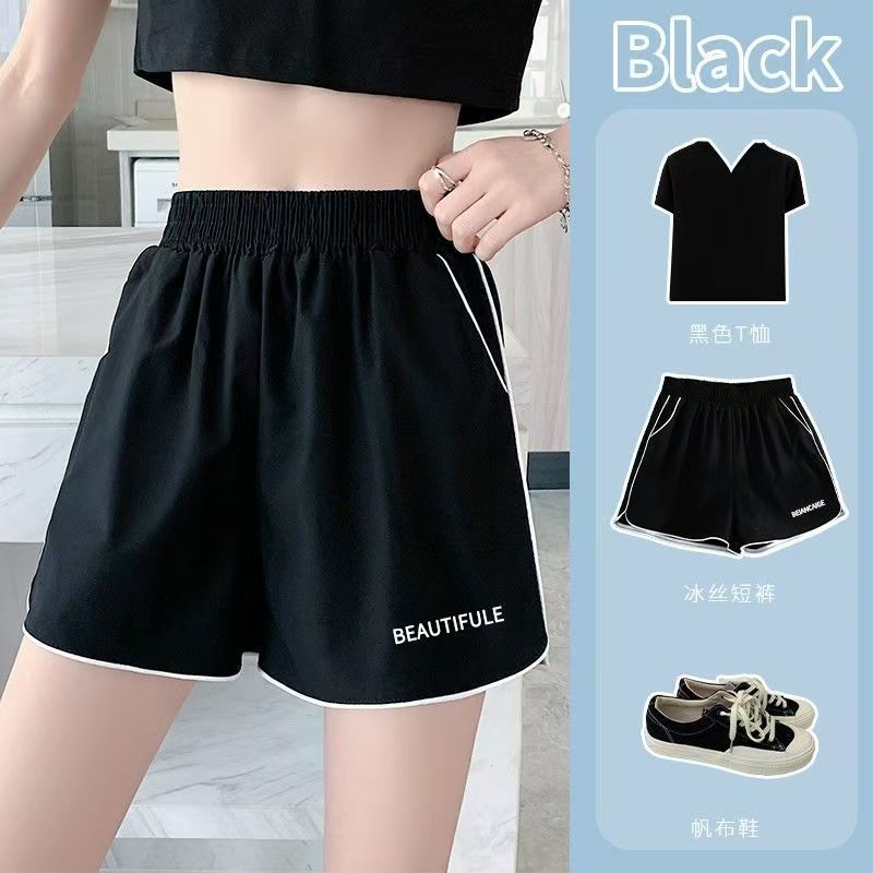 冰丝运动短裤女2025夏季新款宽松薄款外穿居家瑜伽裤阔腿休闲热裤