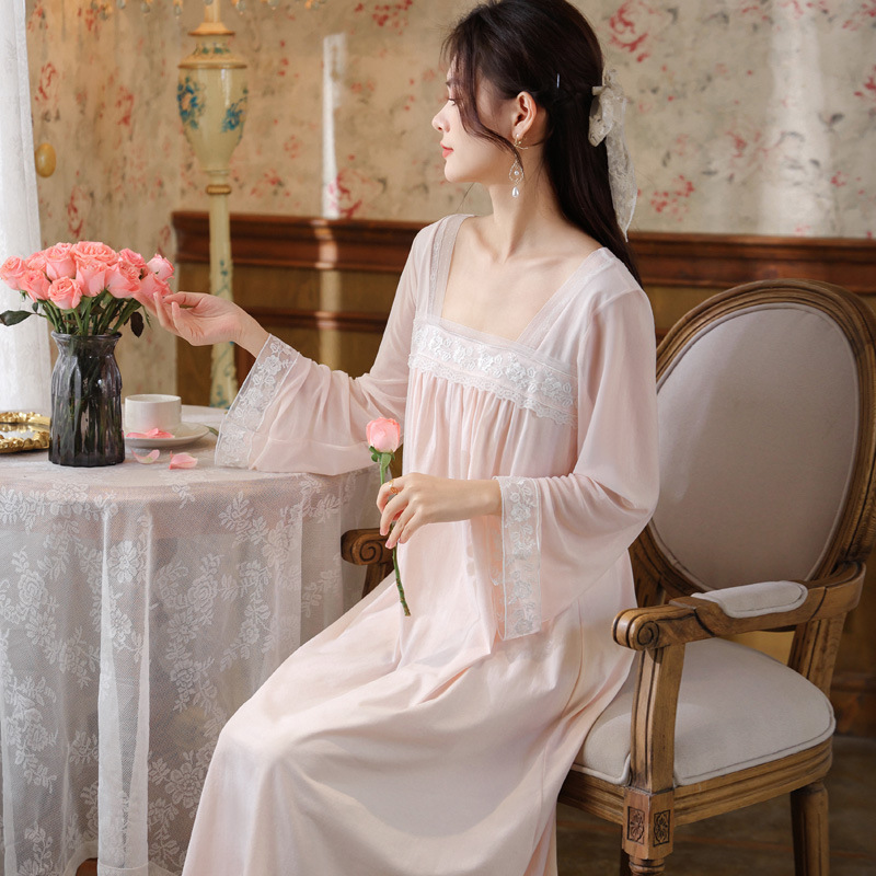纯棉春夏公主薄蕾丝长裙宽松大码