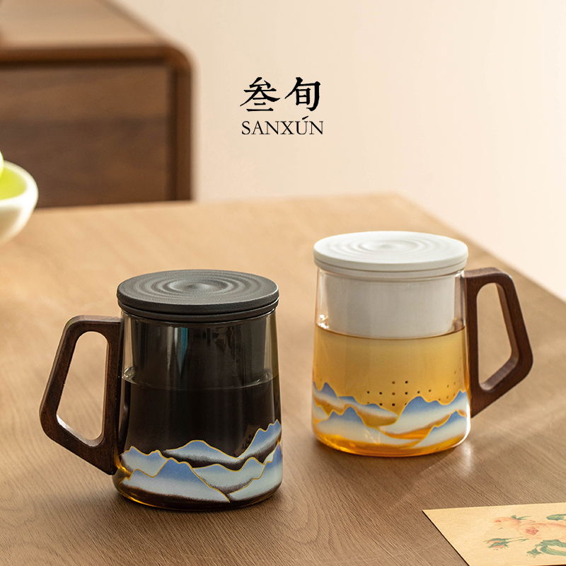 叁旬温感变色泡茶杯玻璃带盖过滤陶瓷马克杯办公室茶水分离杯子