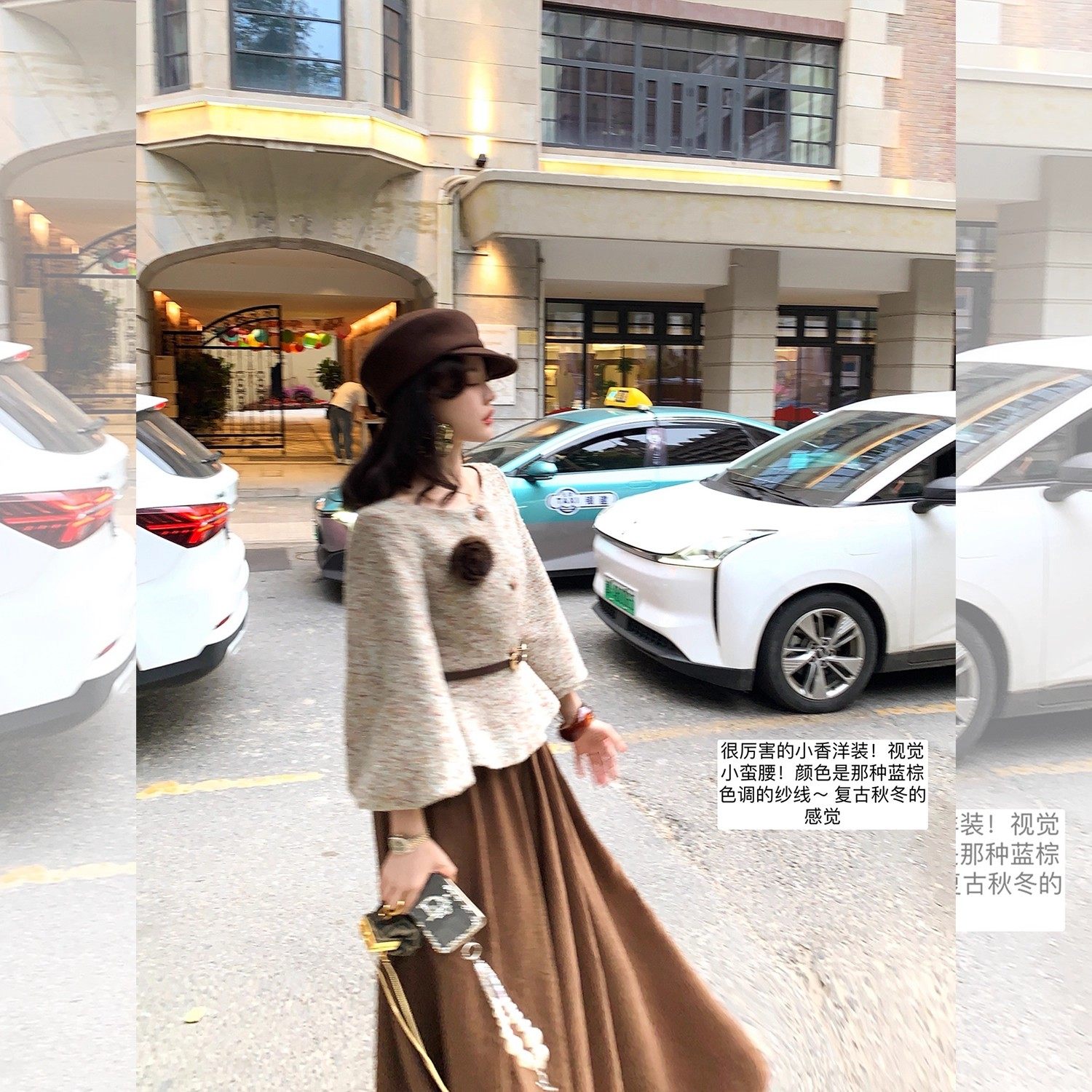 2025年新款小蛮腰气质名媛小香风收腰外套复古秋套装