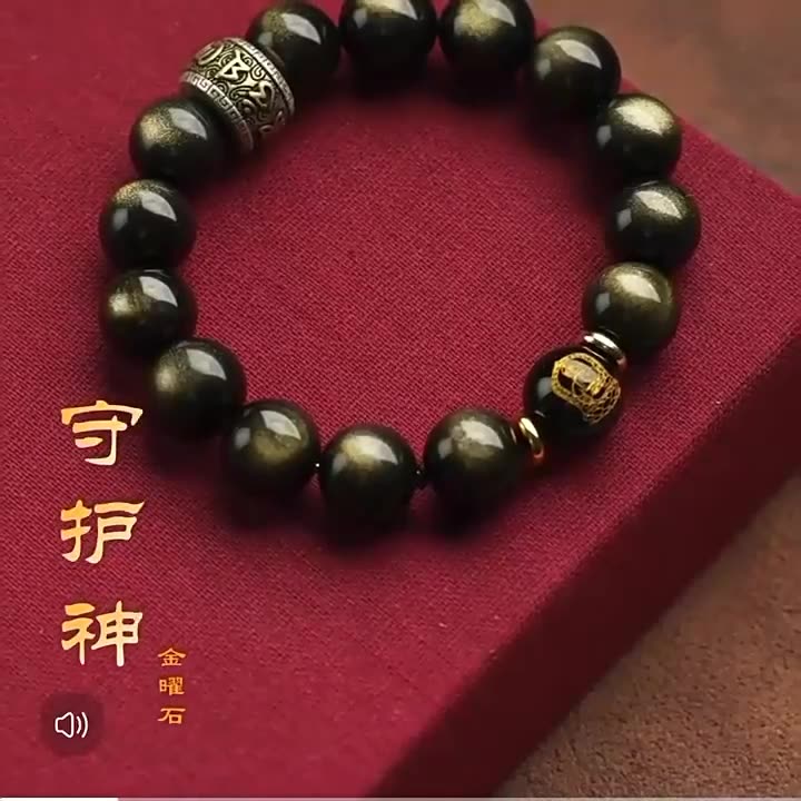 天然黑曜石手链男金曜石手串女本命年生肖龙佛珠护身符送男友礼物