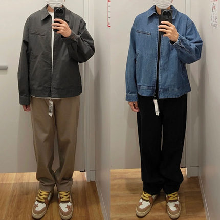 优优2025新款拉链茄克男女牛仔外套翻领底特律夹克E475681/478230