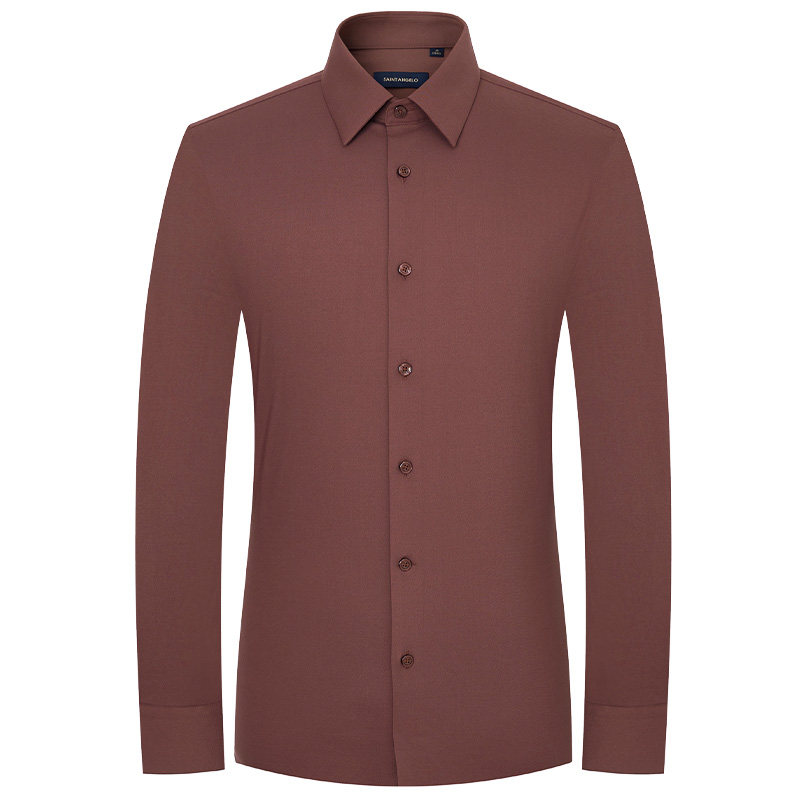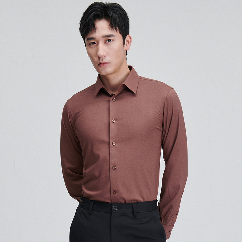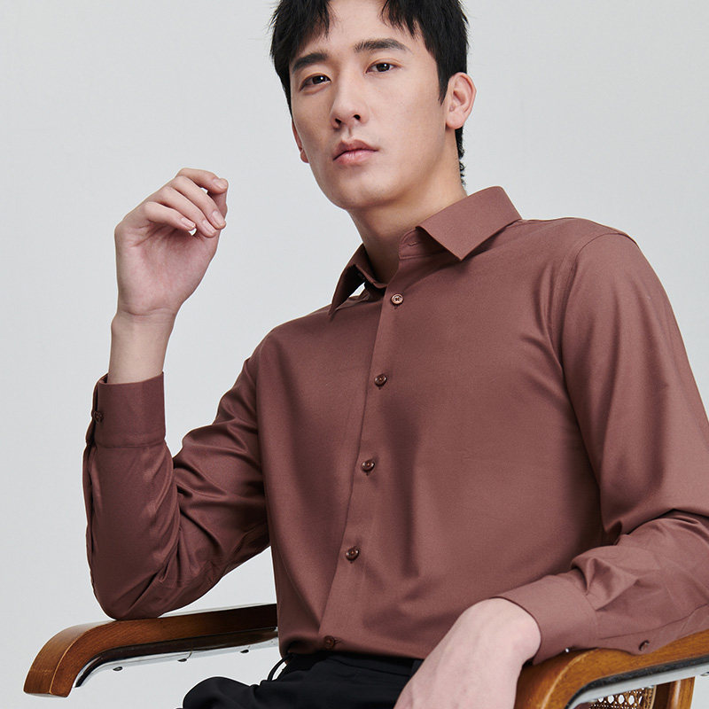 报喜鸟春季新款男士商务正装时尚长袖衬衫百搭上衣打底衬衣红棕色