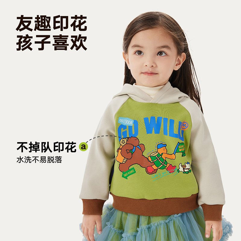 马拉丁童装儿童卫衣冬装新款男童女童大童小童加绒插肩袖卫衣