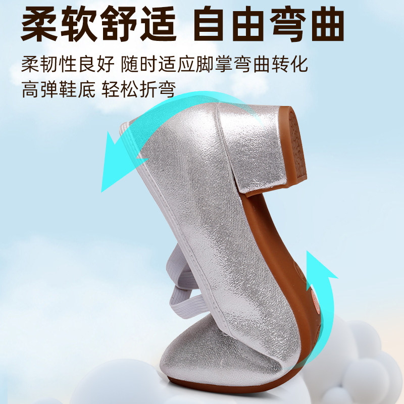 高跟新款不累脚中老年广场舞牛筋底室外银色舞蹈鞋女士软底跳舞鞋