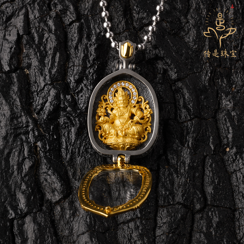 传是黄财神吊坠男女S925纯银项链佛牌挂坠嘎乌盒中国风挂件礼物