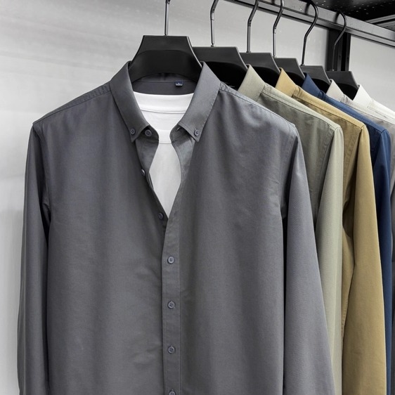 莱赛尔+棉男士长袖衬衫抗皱男职业装白衬衣城市户外风肌理纹衬衣