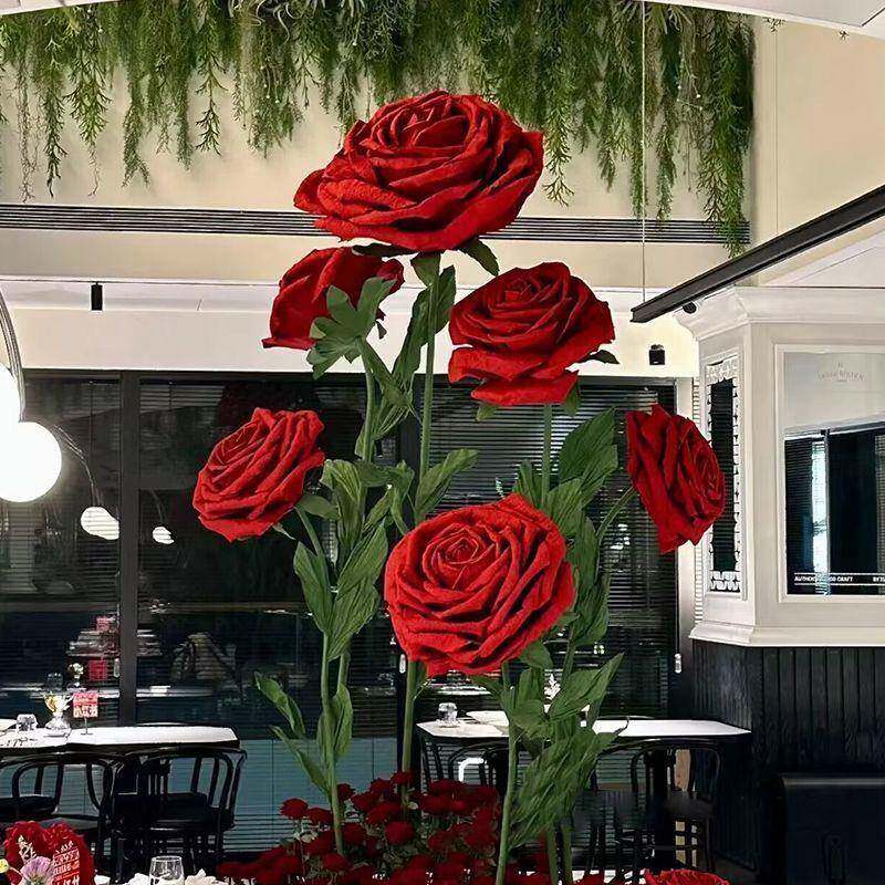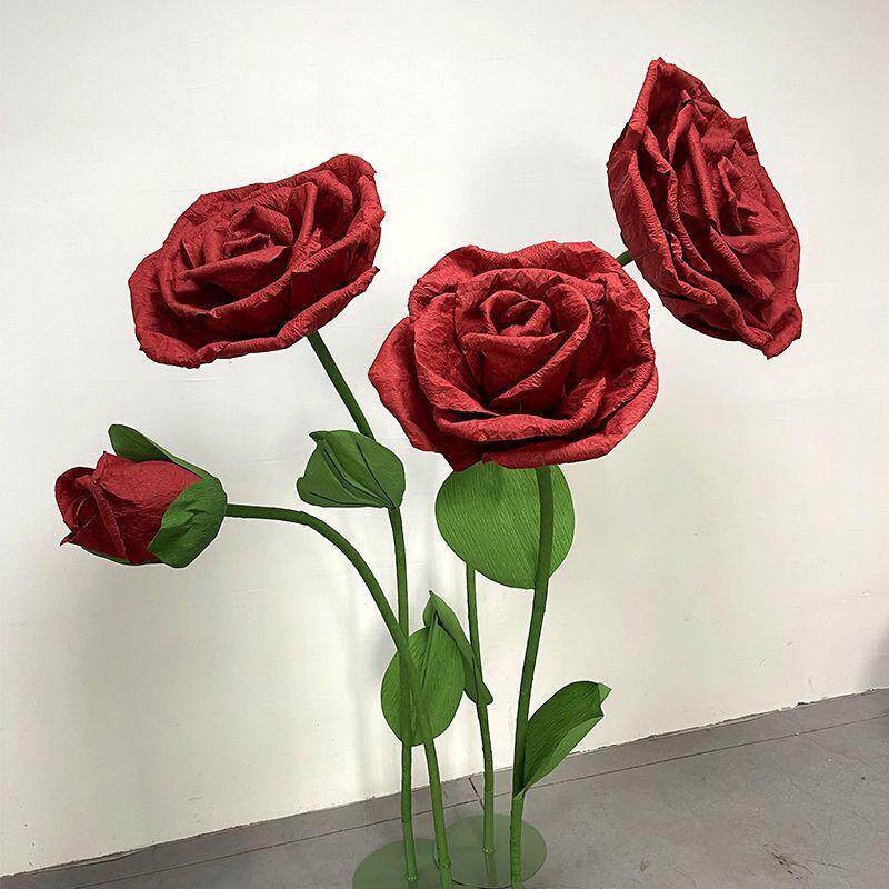 七夕装饰巨型立体玫瑰纸花网红橱窗美陈布置商场婚礼背景装饰花艺