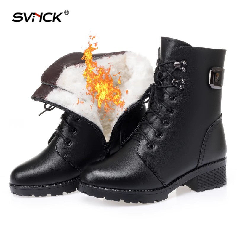 新款厚底马丁靴女士短靴真皮棉鞋女冬季加绒羊毛大棉靴皮鞋雪地靴