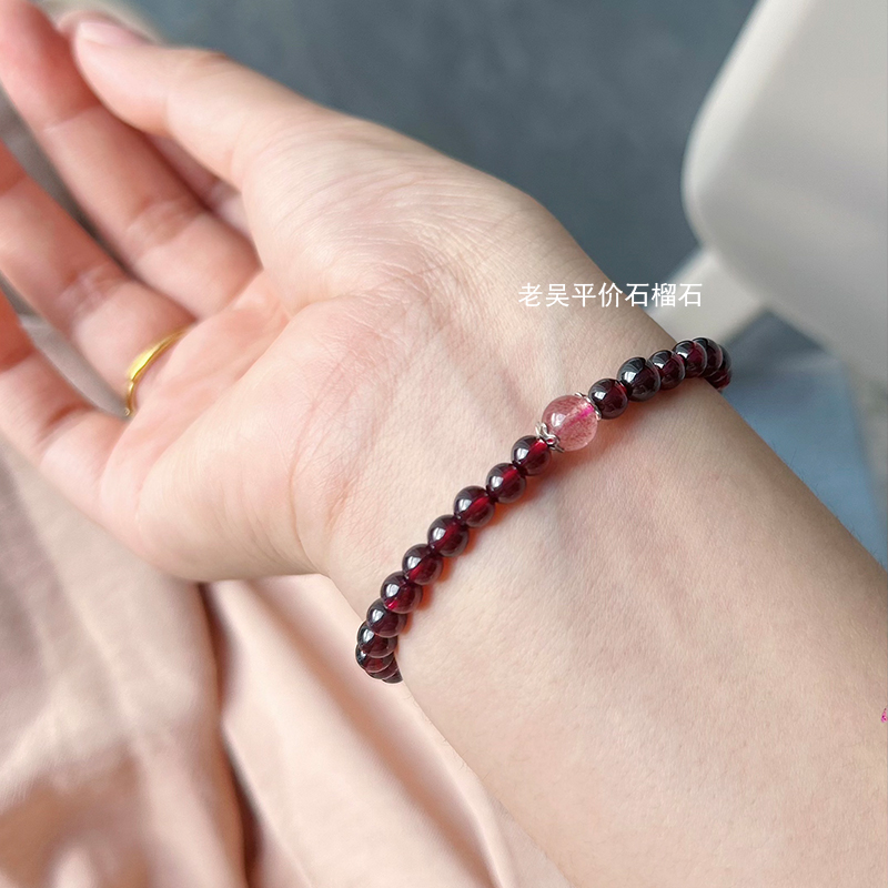「宠粉福利」老吴天然酒红石榴石女手链手串单圈收藏级 正品碧玉