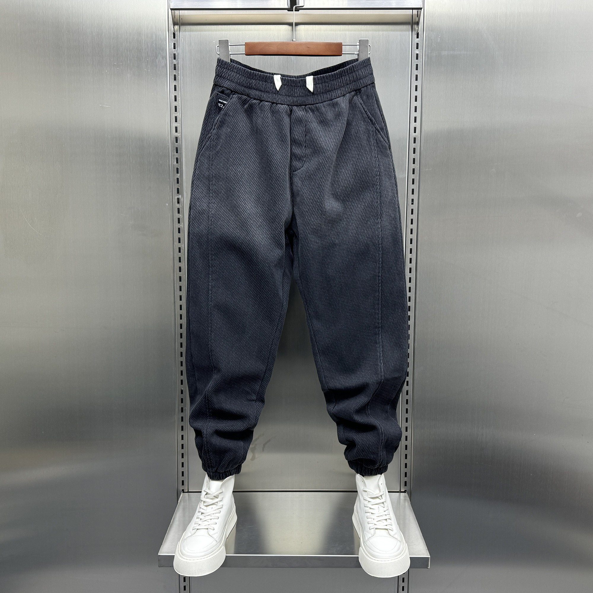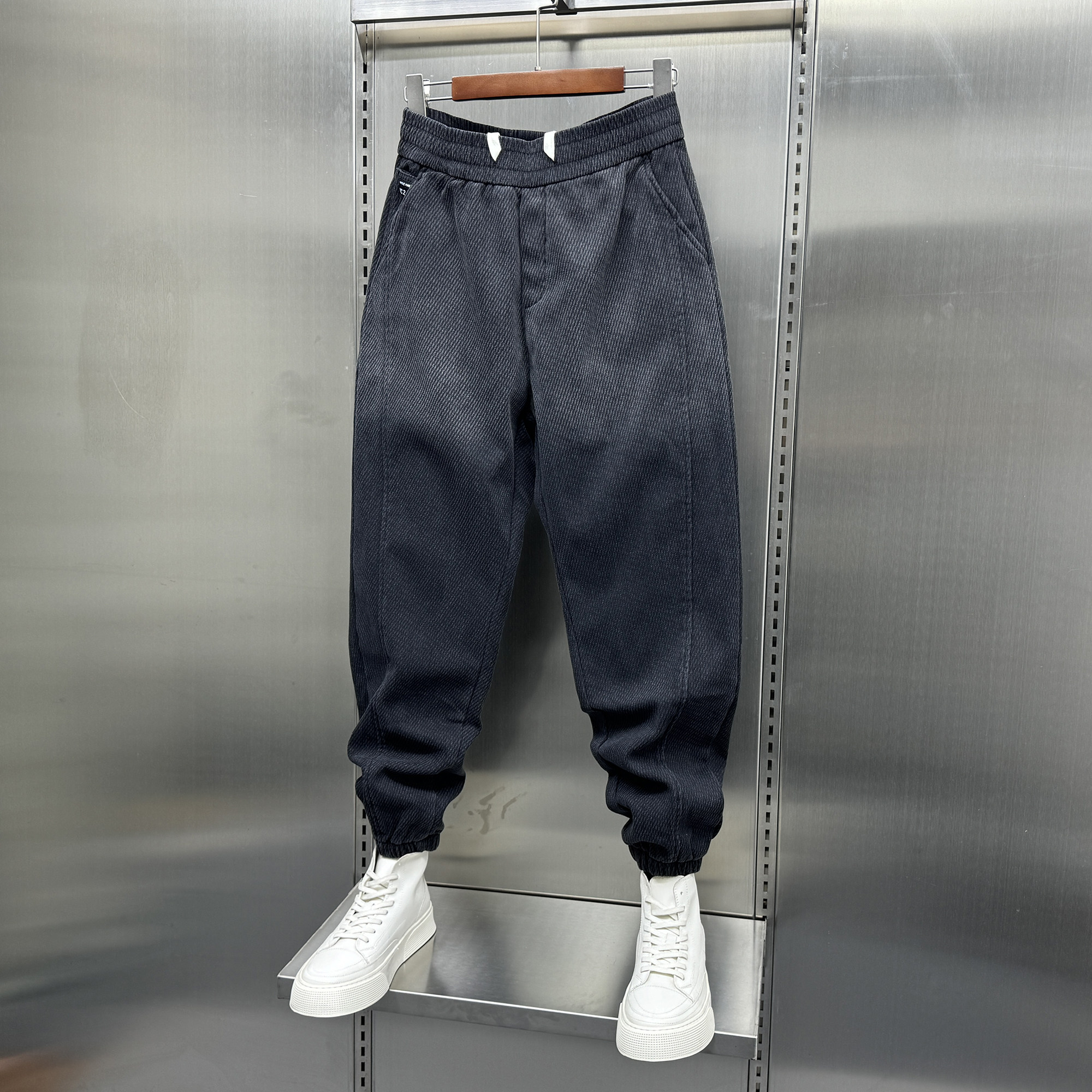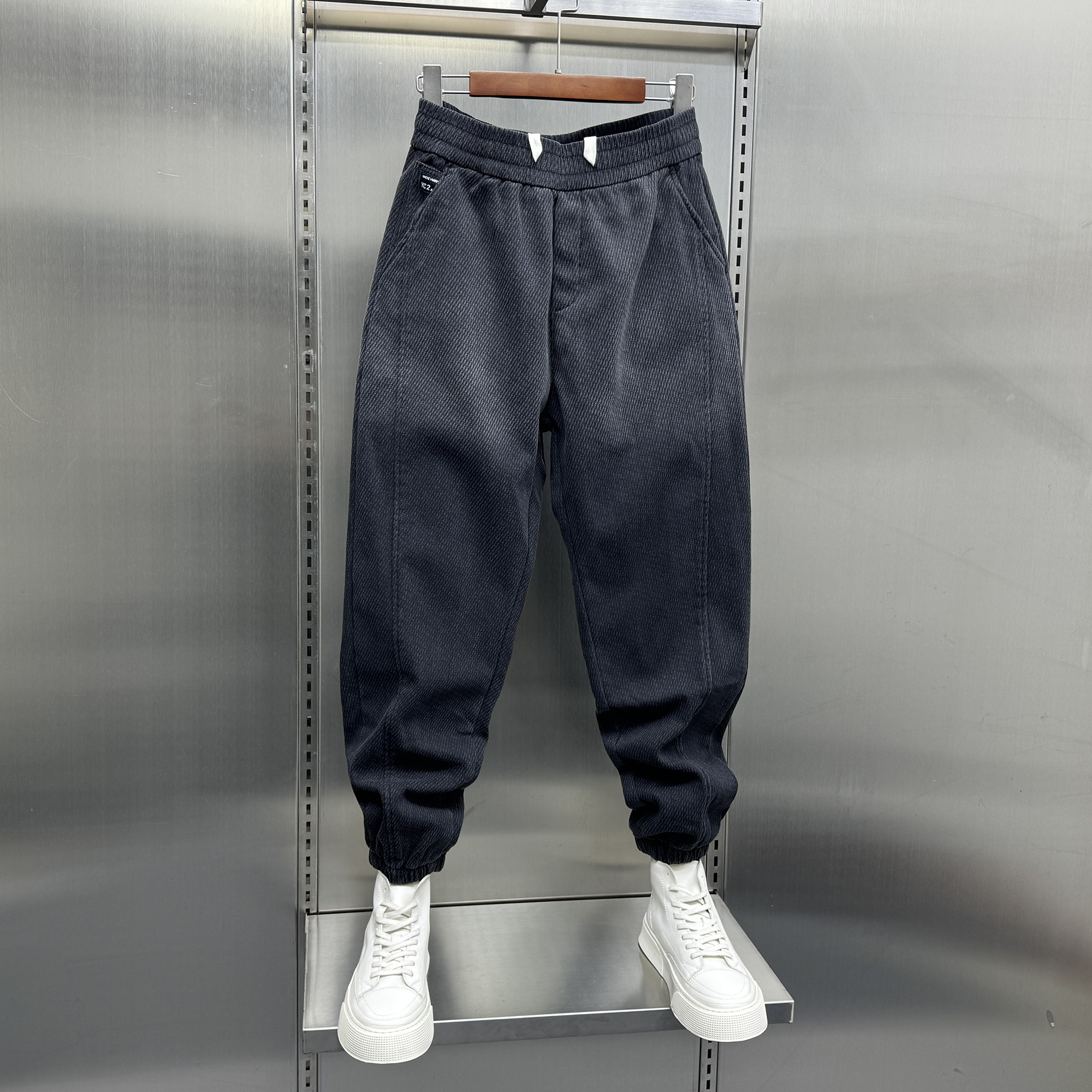 男士加绒休闲牛仔裤秋冬新款潮流宽松渐变色束脚裤韩版痞帅哈伦裤