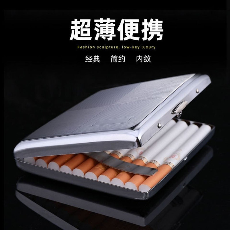 金属烟盒20支装男士超薄铁烟夹个性创意防压防潮香於盒便携