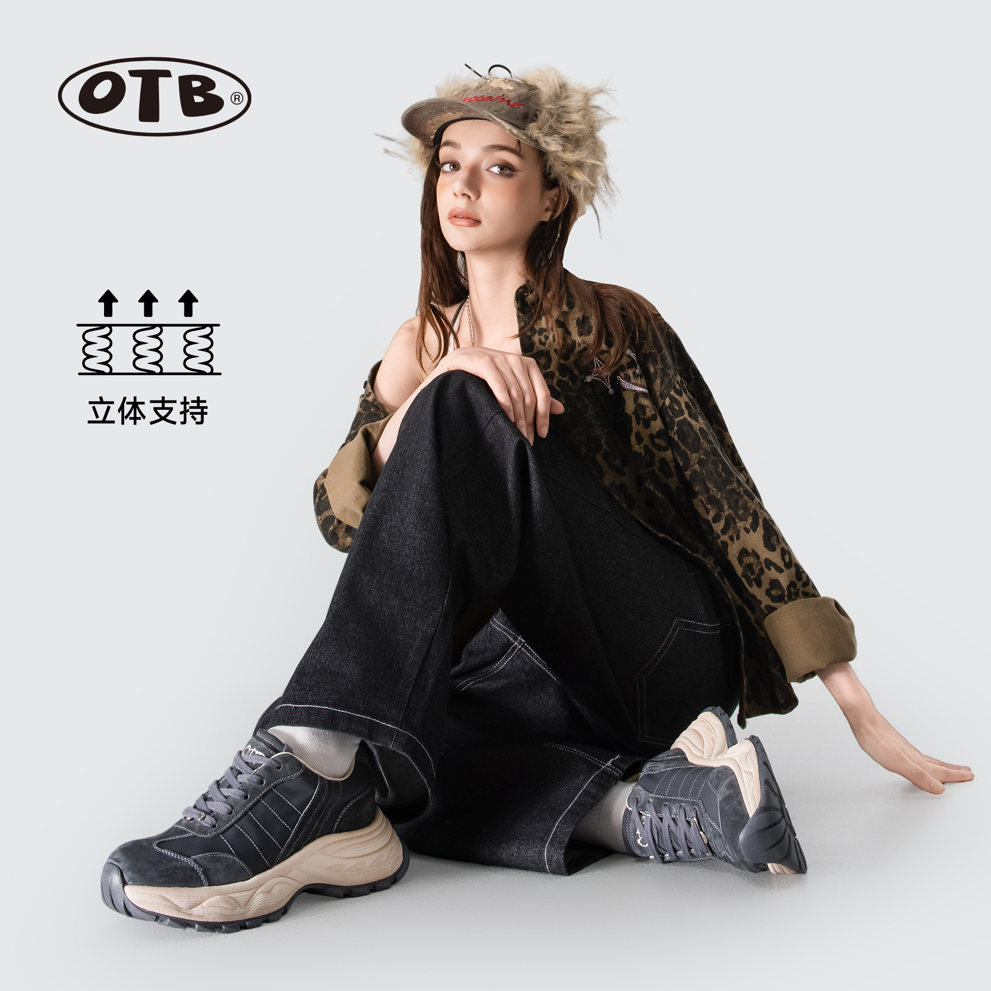 OTB老爹鞋女2025秋季新款厚底拼接复古增高休闲运动鞋百搭跑步鞋