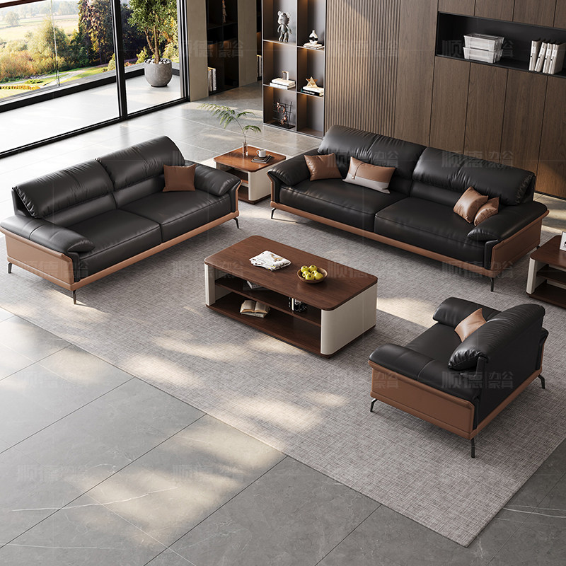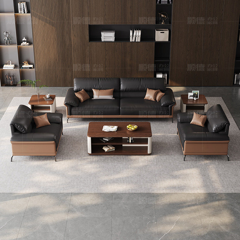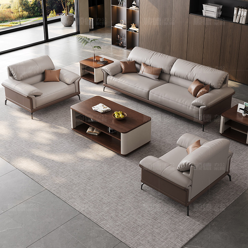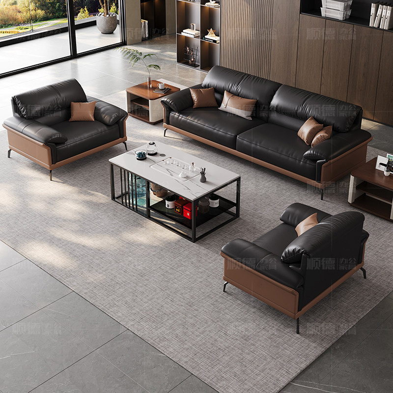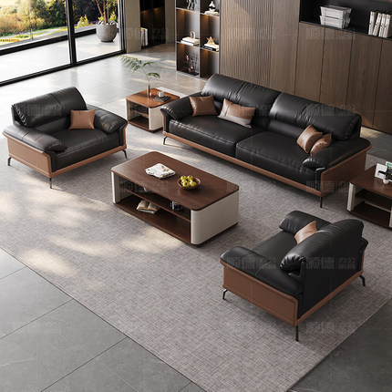 办公沙发办公室现代简约真皮商务老板会客室接待家具茶几组合套装