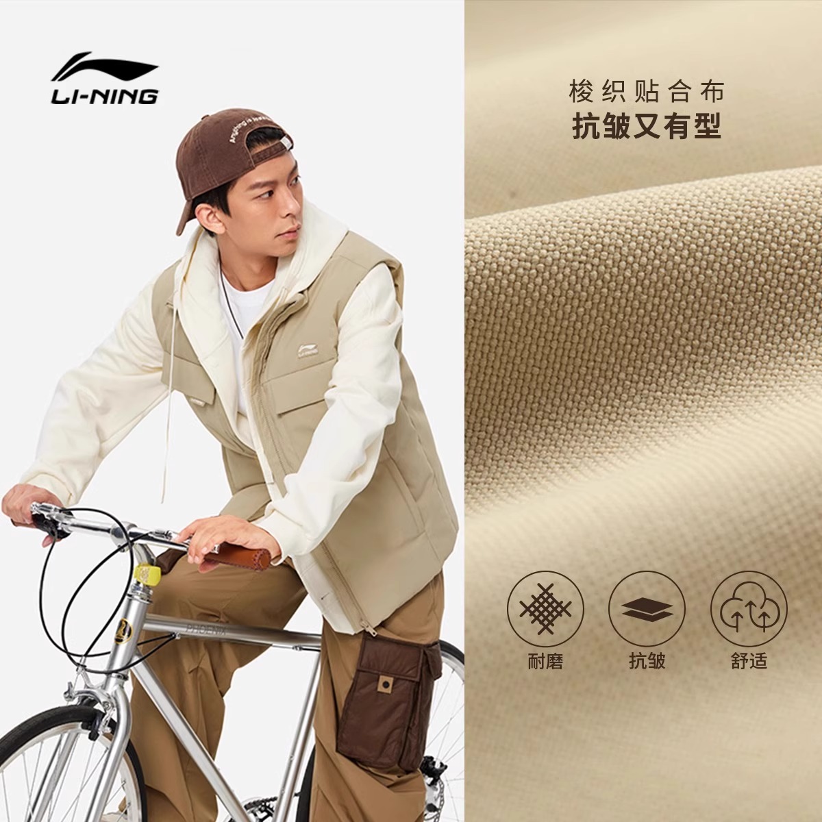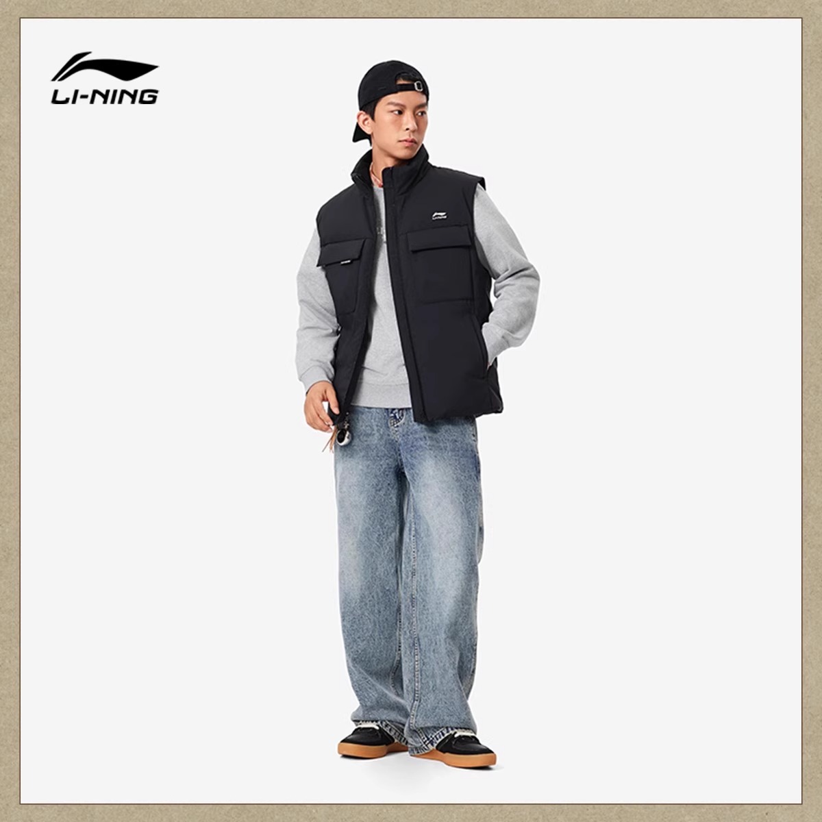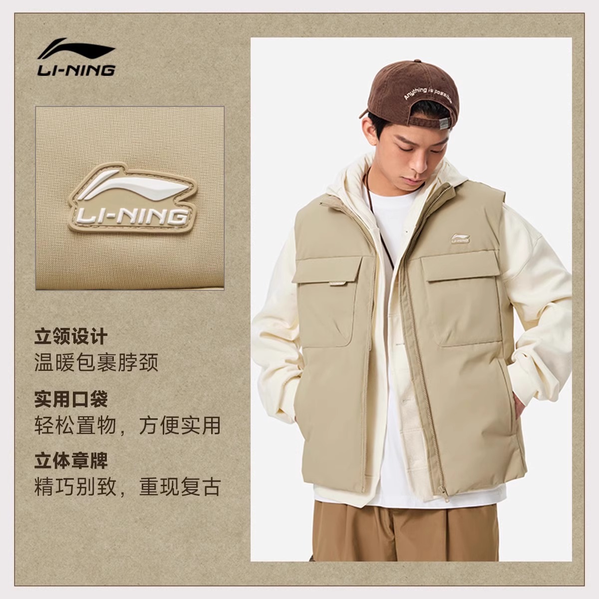 李宁羽绒马甲男士冬季新款潮流外套防泼水鸭绒背心保暖工装运动服